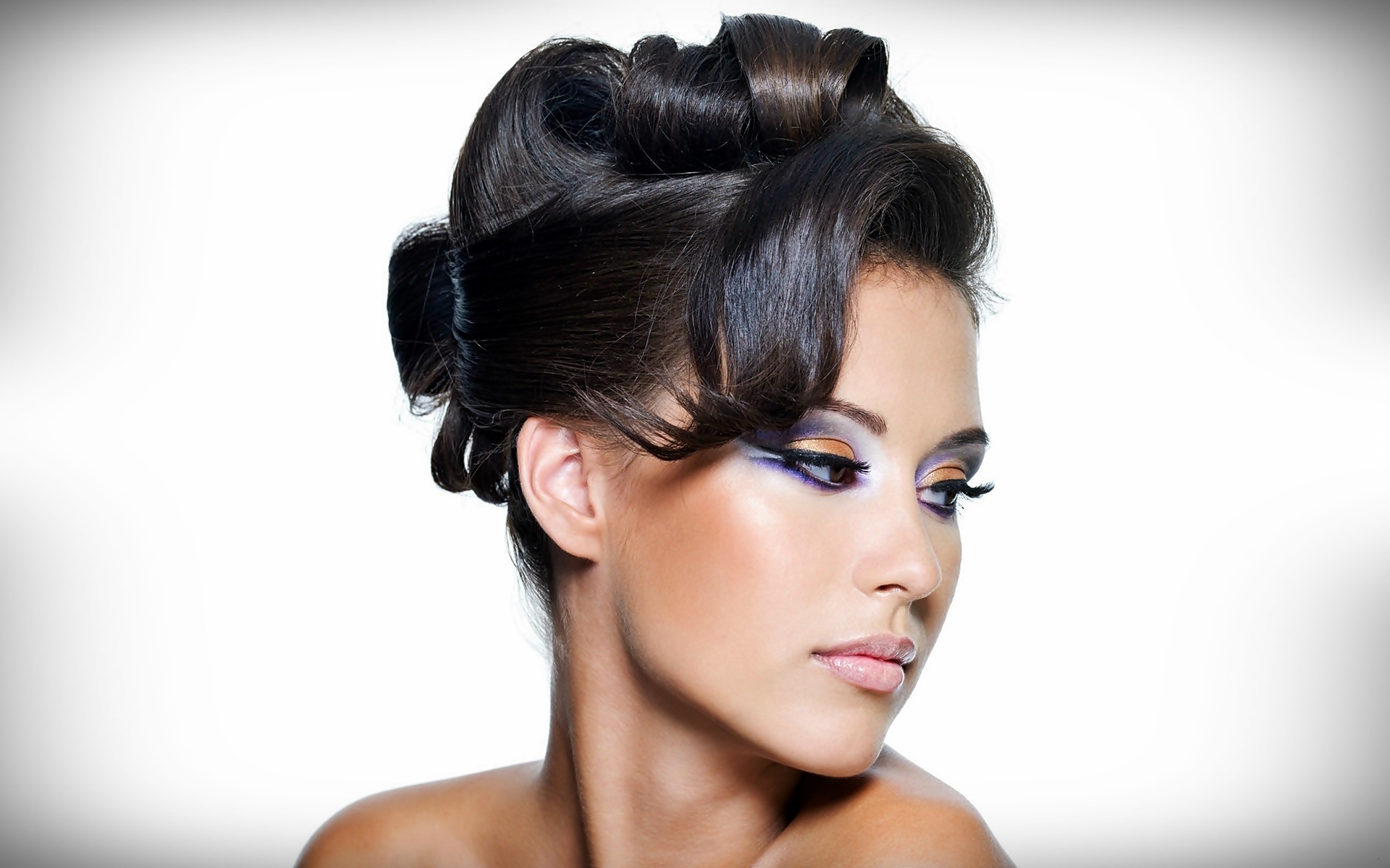 Edytor tapety: Piękna, Brunetka, Fryzura, Makijaż, Portret