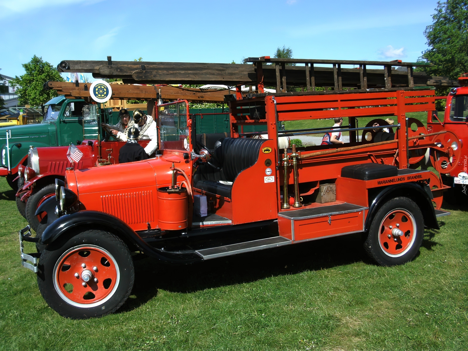 Edytor tapety: Samochód, Strażacki, Retro, Drabina, Trawa