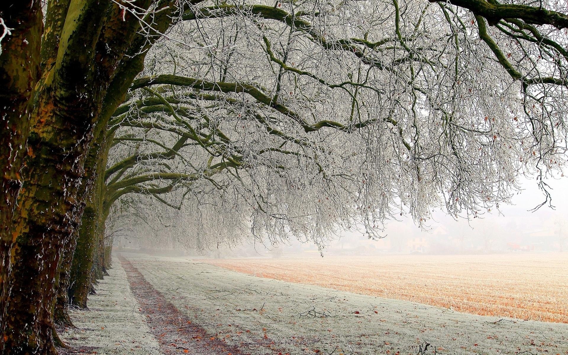 Edytor tapety: Droga, Ośnieżone, Drzewa