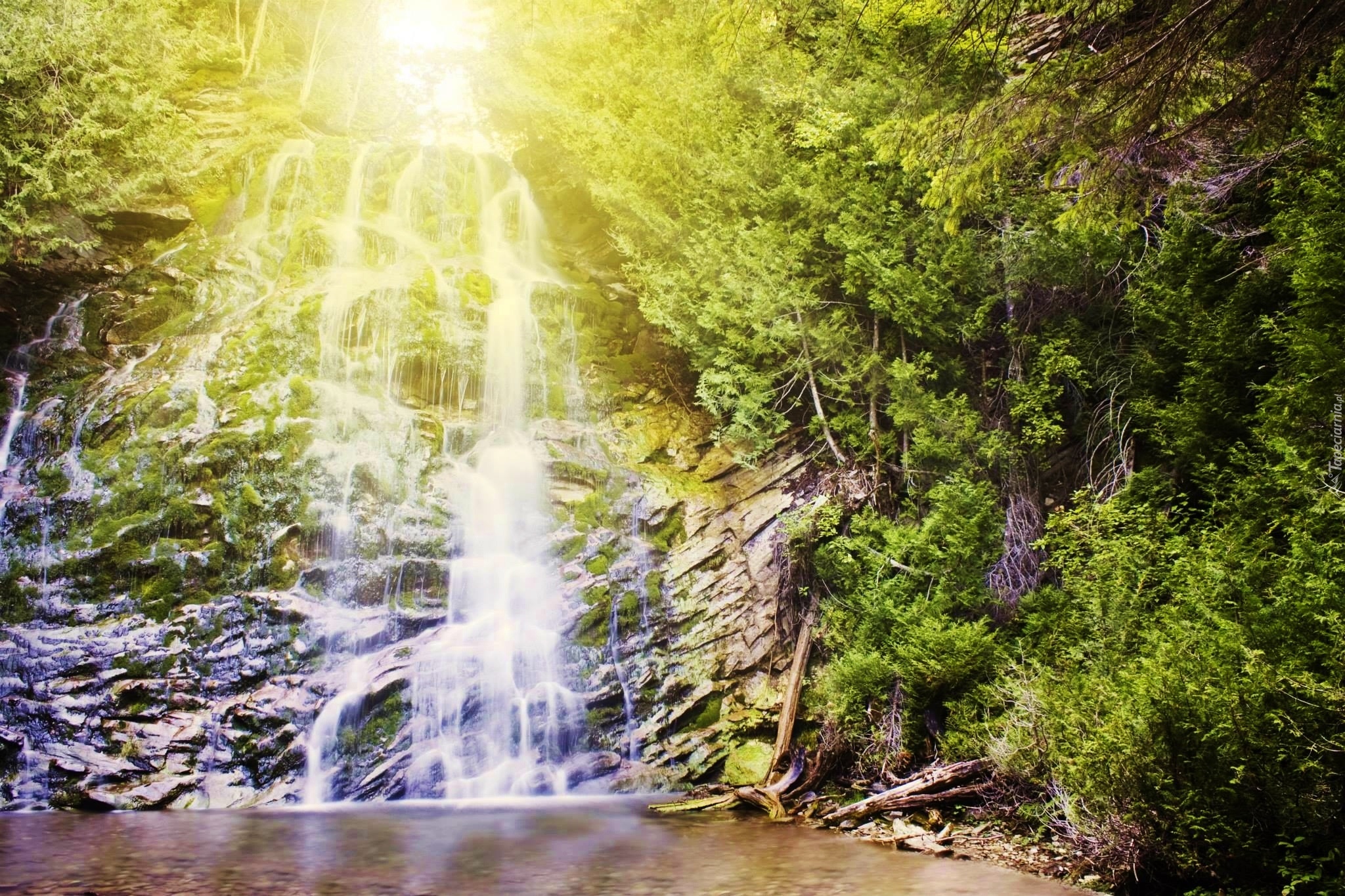 Edytor tapety: Wodospad, Światło, Drzewa