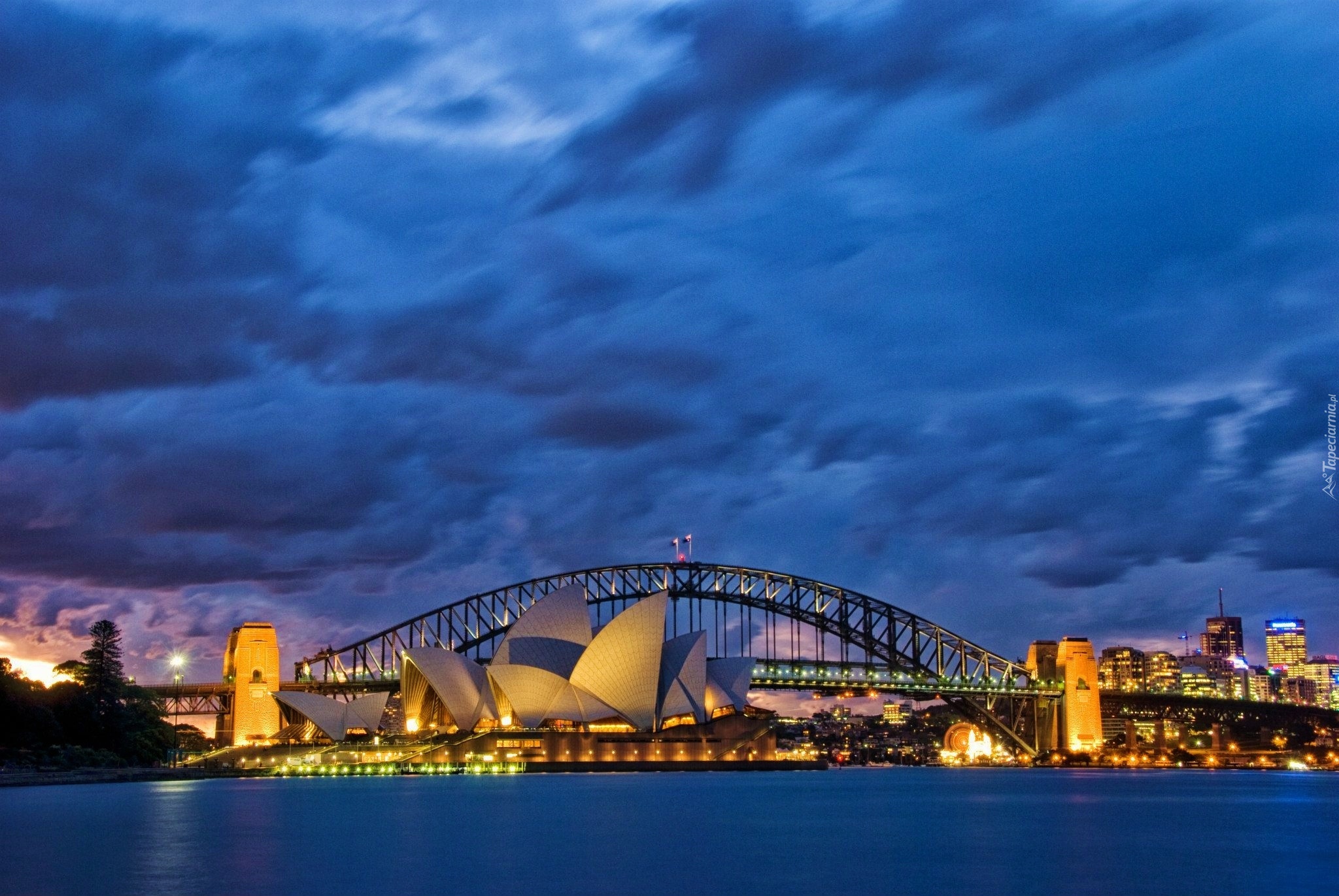 Edytor tapety: Australia, Sydney, Zatoka Port Jackson, Sydney Opera House, Most Sydney Harbour Bridge, Miasto nocą