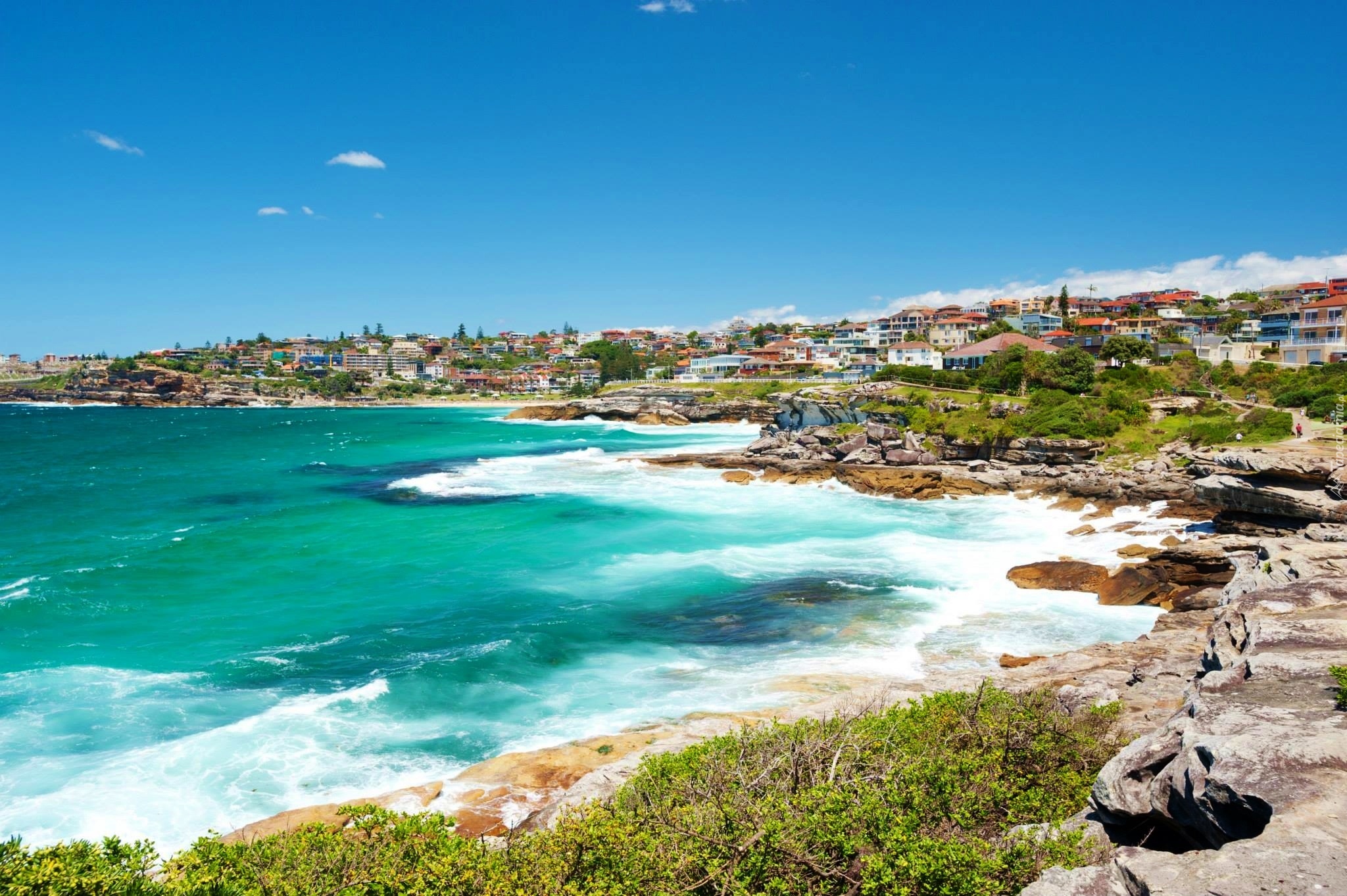 Edytor tapety: Zatoka, Morze, Skały, Domy