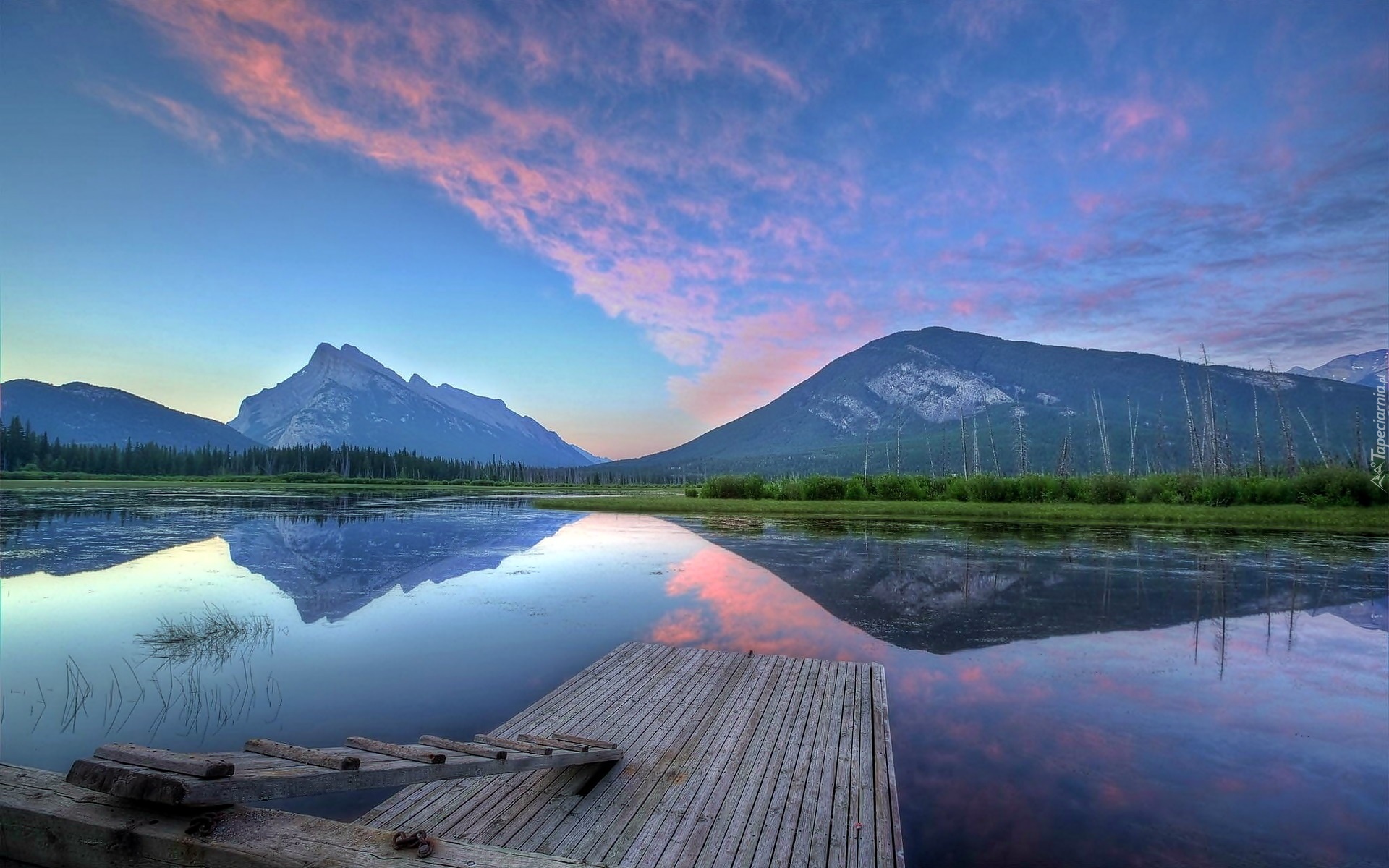 Edytor tapety: Góry, Jezioro, Pomost, Odbicie
