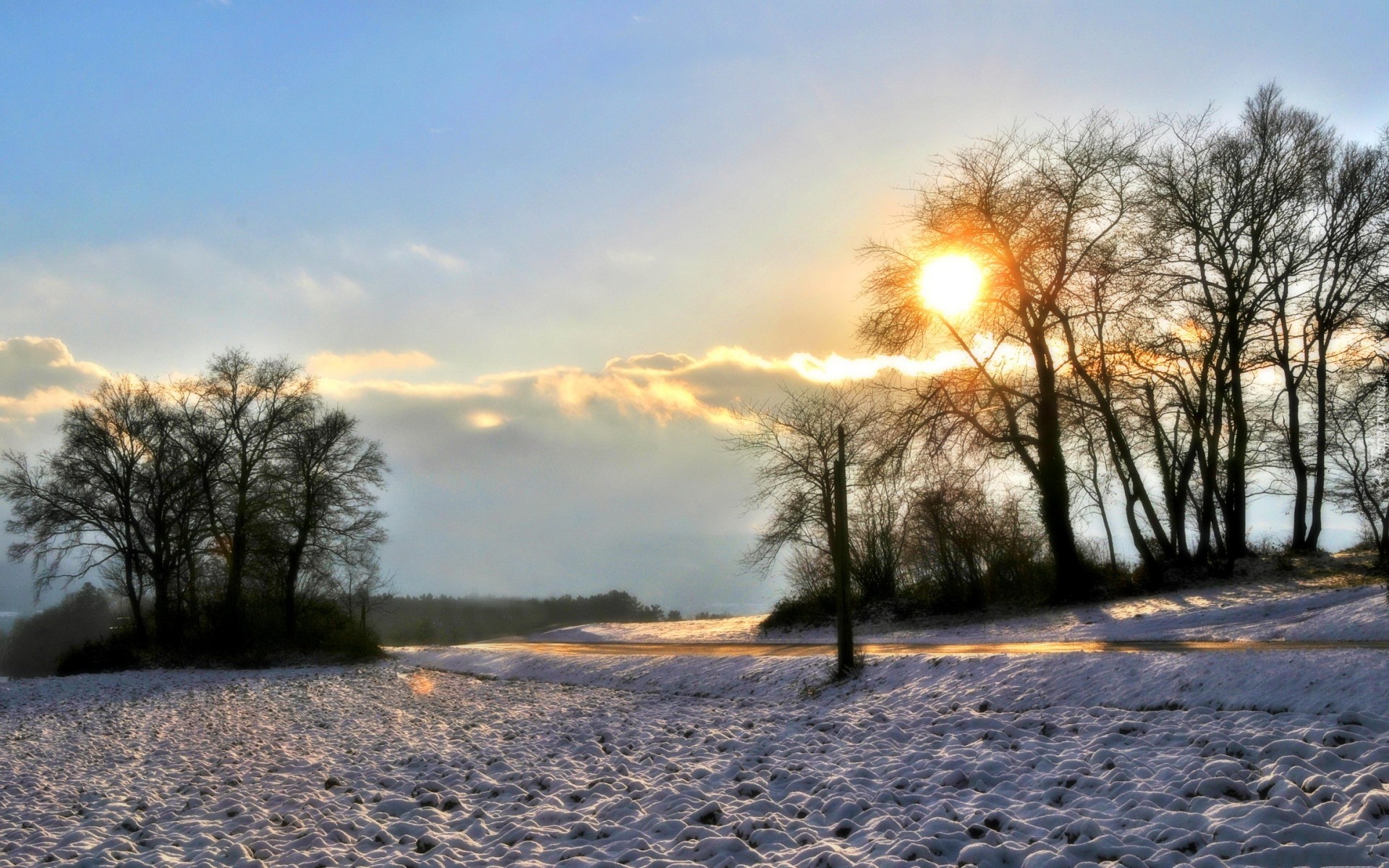 Edytor tapety: Droga, Pola, Lasy, Promienie, Słońca, Zima