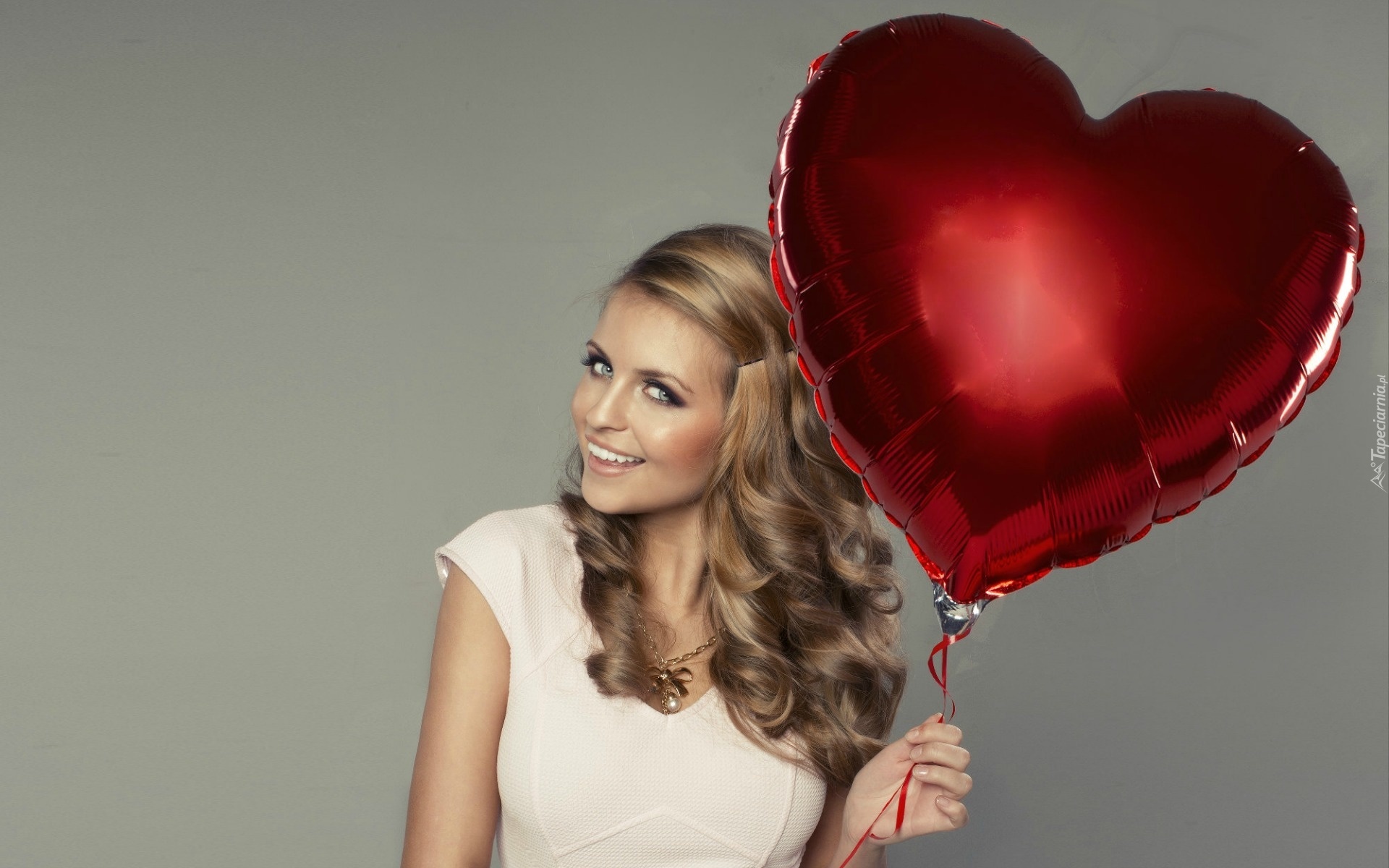 Edytor tapety: Uśmiechnięta, Blondynka, Serce, Walentynki