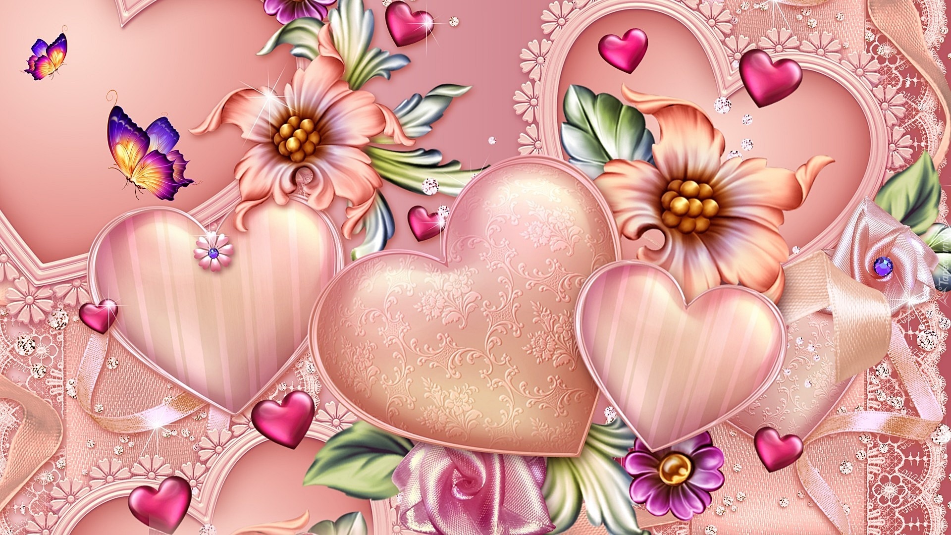 Edytor tapety: Różowe, Serca, Art, Walentynki