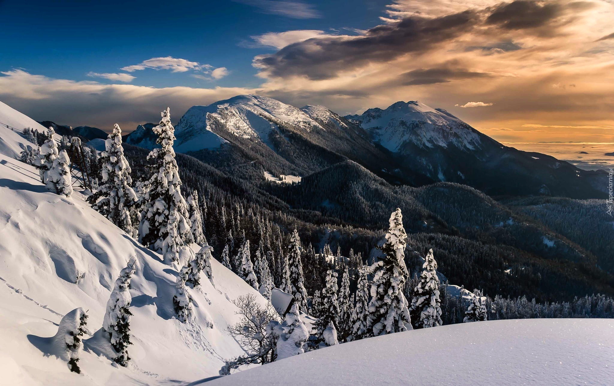 Edytor tapety: Chmury, Góry, Lasy, Zima