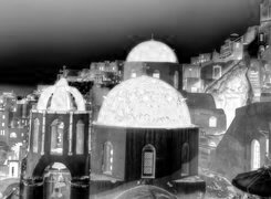 Edytor tapety: Cerkiew, Santorini, Grecja, Niebieskie, Kopuły