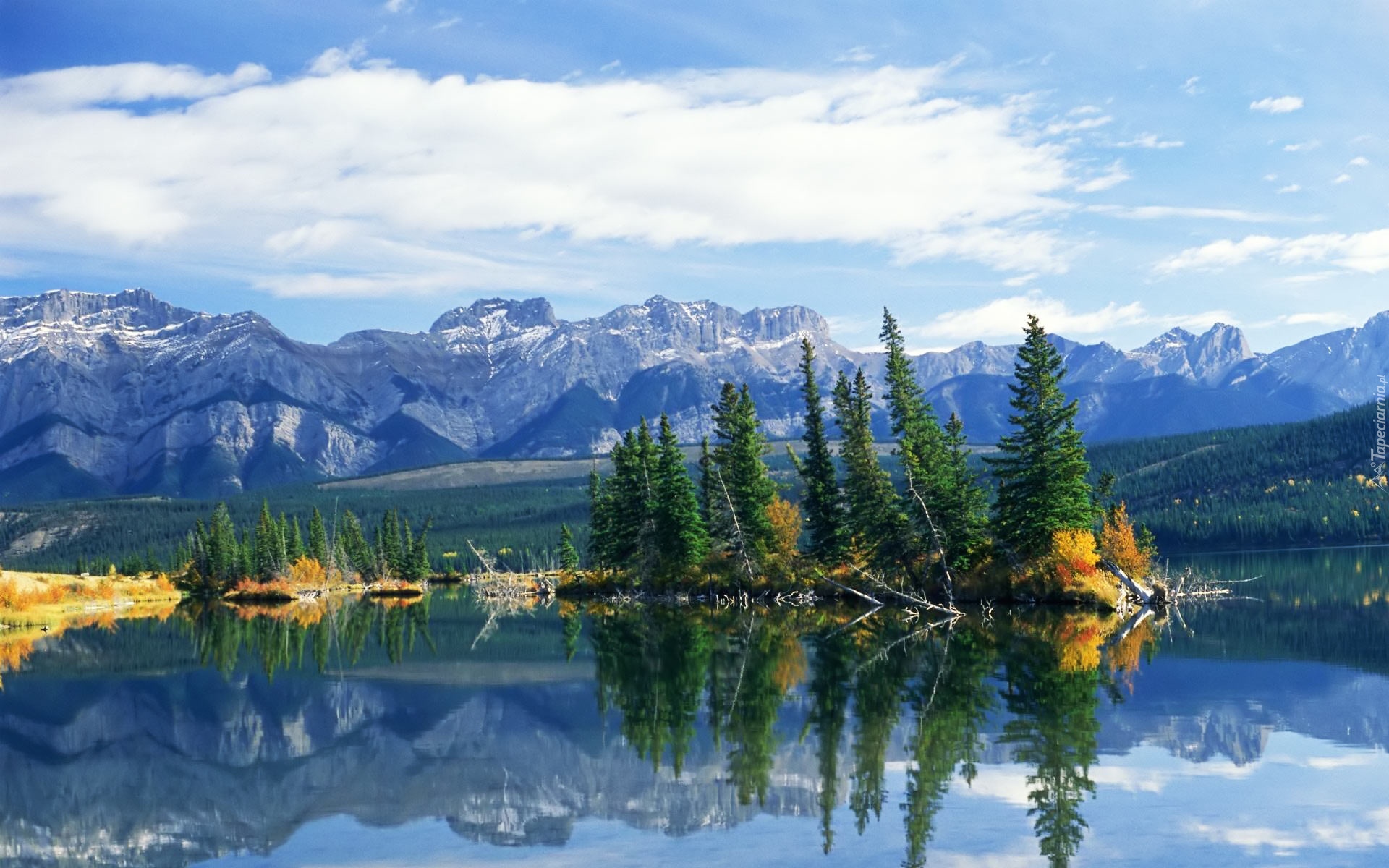 Edytor tapety: Jezioro, Góry, Odbicie, Lasy