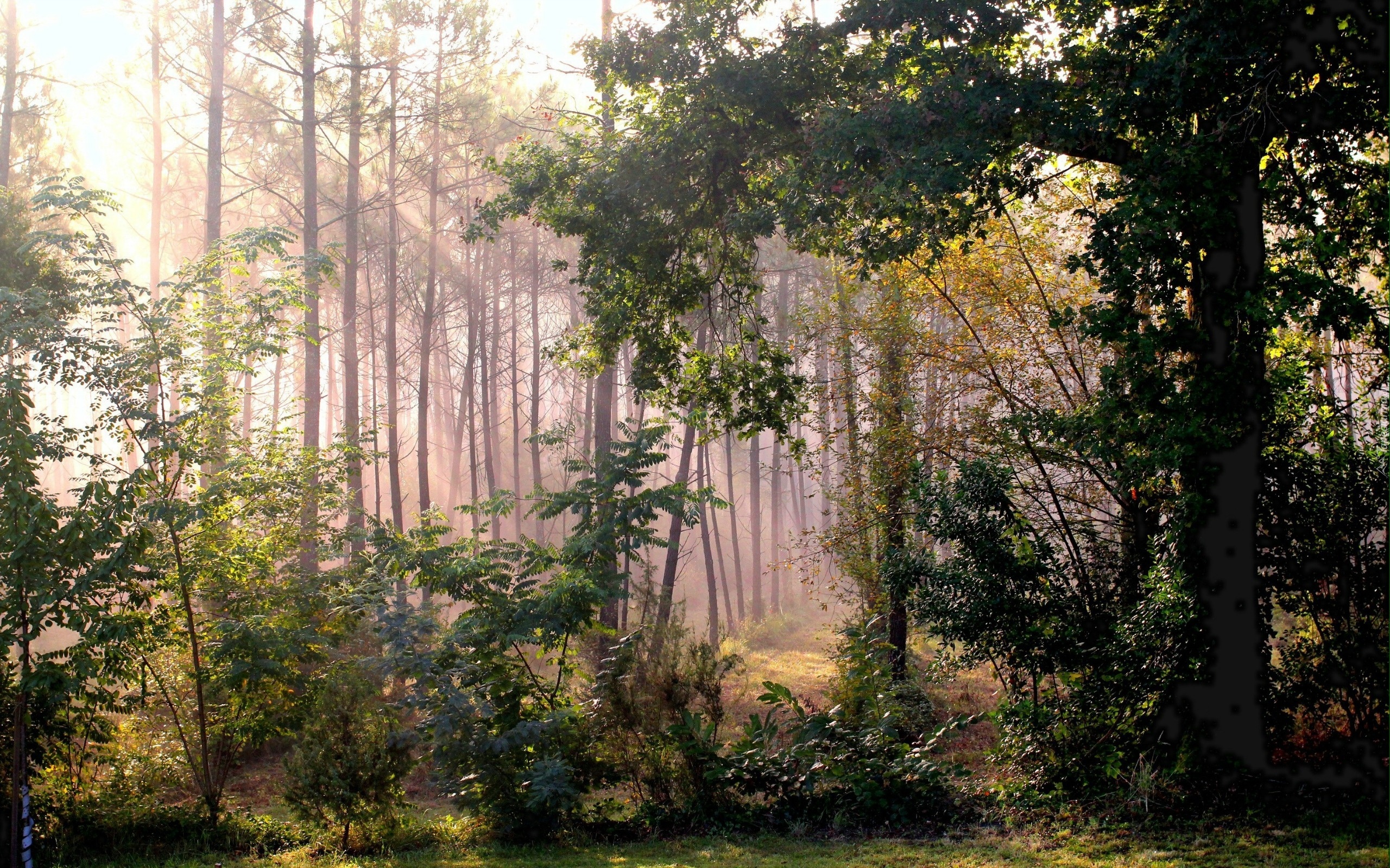 Edytor tapety: Las, Drzewa, Krzewy, Promienie, Słońca, Jesień