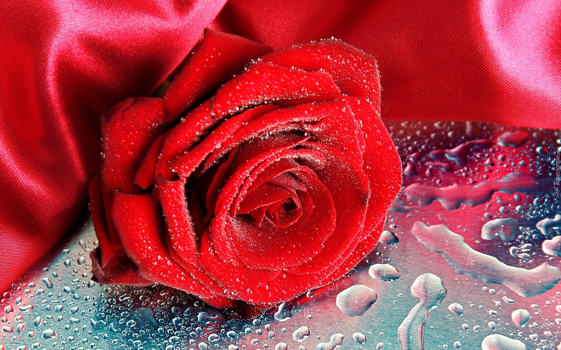 Edytor tapety: Czerwona, Róża, Deszczowe, Krople