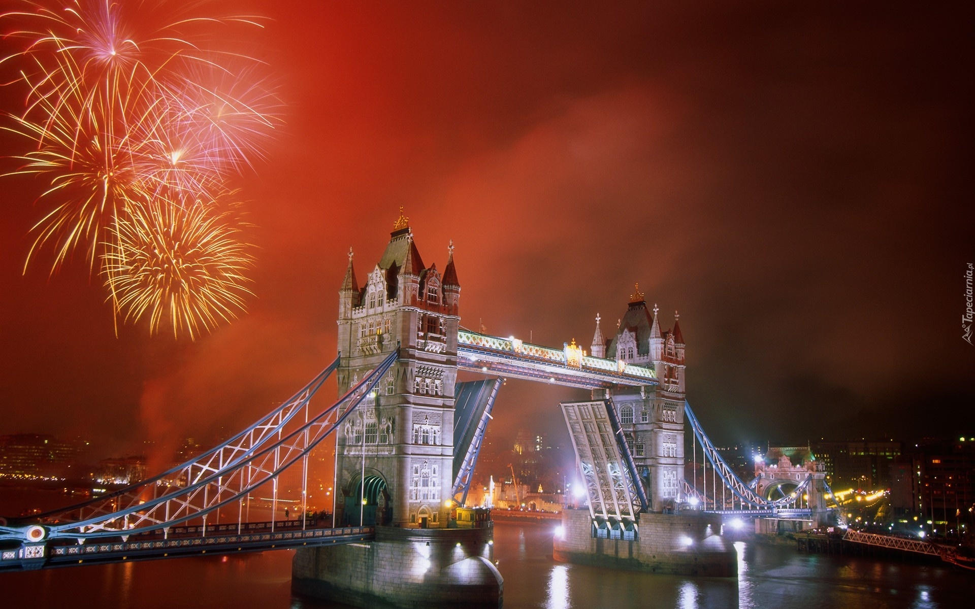 Edytor tapety: Tower Bridge, Londyn, Fajerwerki