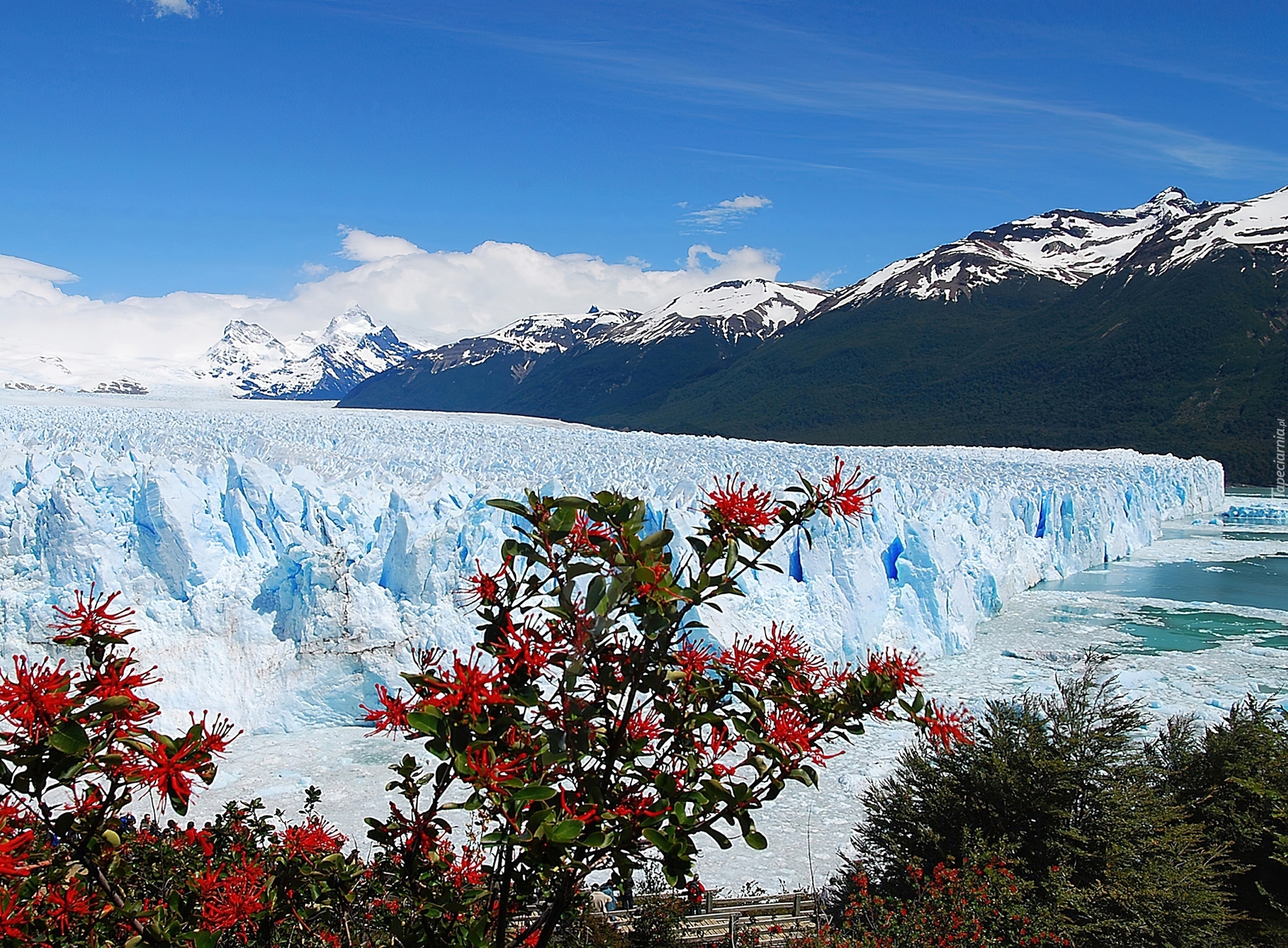 Edytor tapety: Lodowiec, Perito Moreno, Góry, Drzewa, Park Narodowy Los Glaciares, Prowincja Santa Cruz, Argentyna