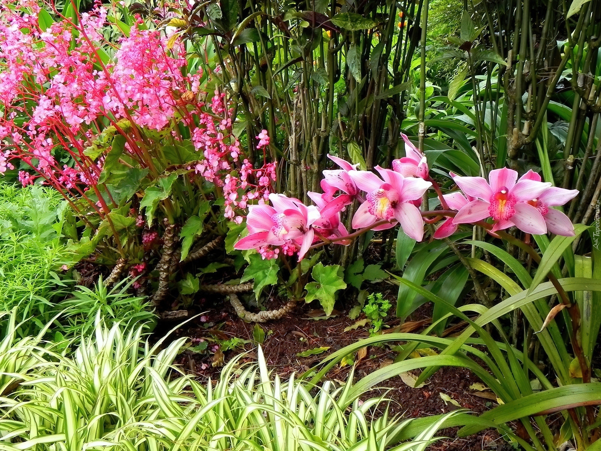 Edytor tapety: Park, Różowa, Orchidea, Ozdobna, Trawa, Rośliny