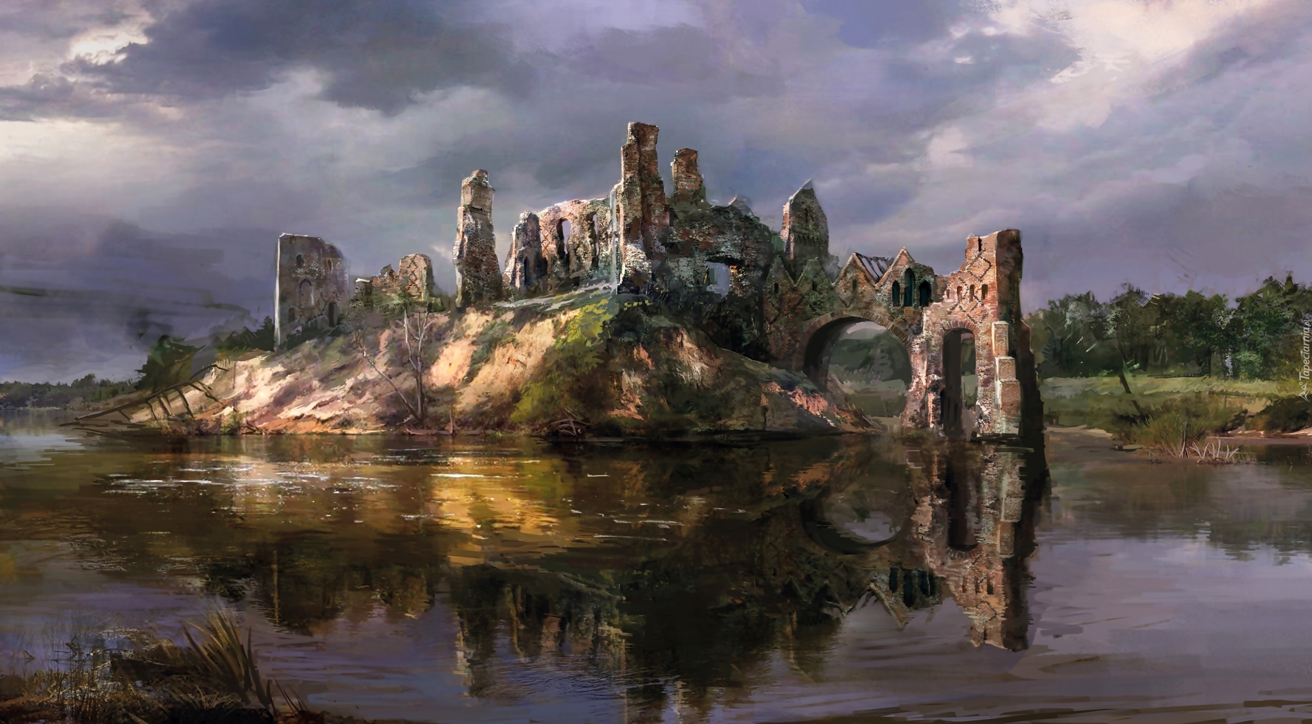 Edytor tapety: Malarstwo, Obraz, Ruiny, Jezioro