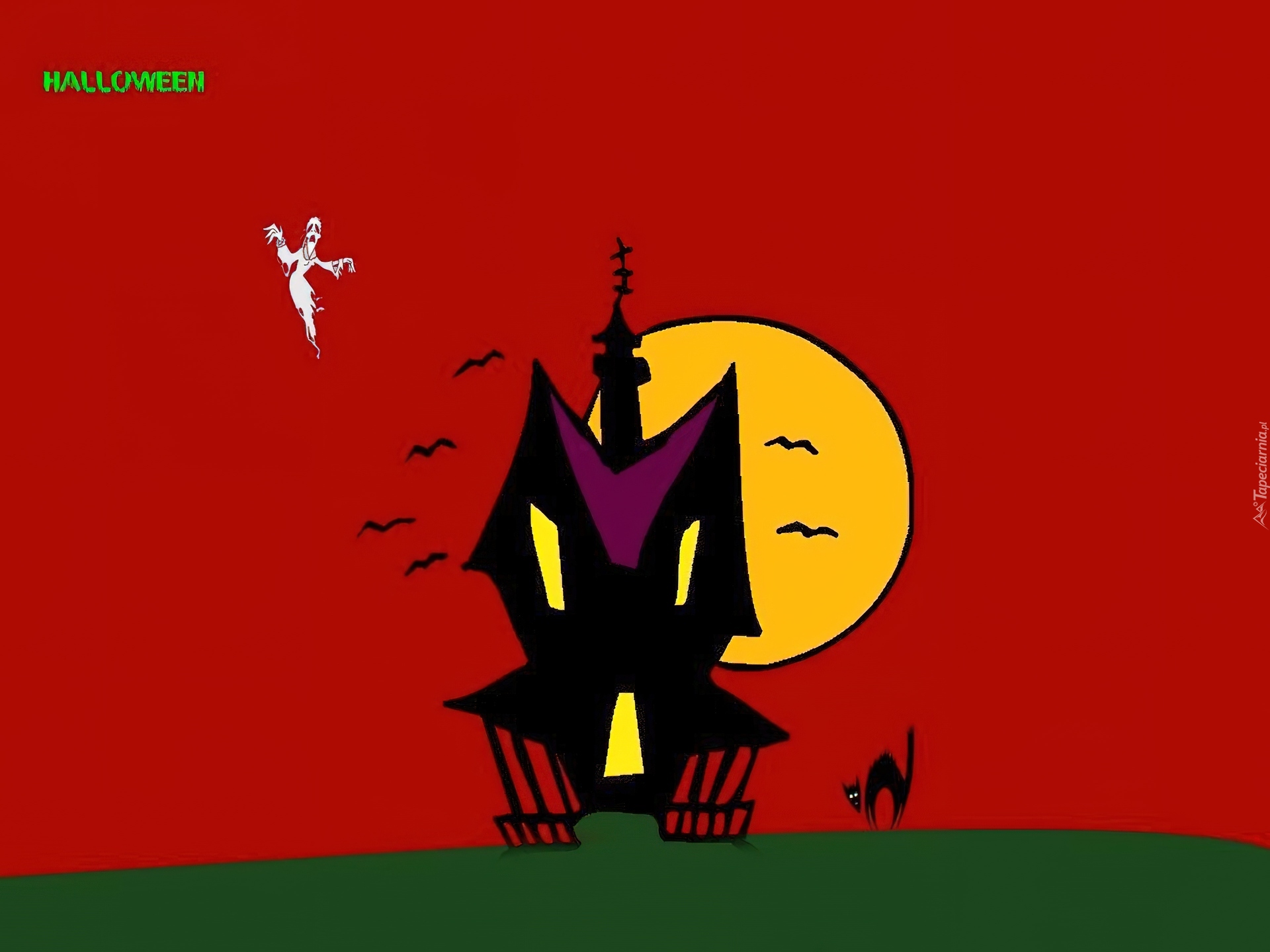 Edytor tapety: Halloween,domek, księżyc , kot