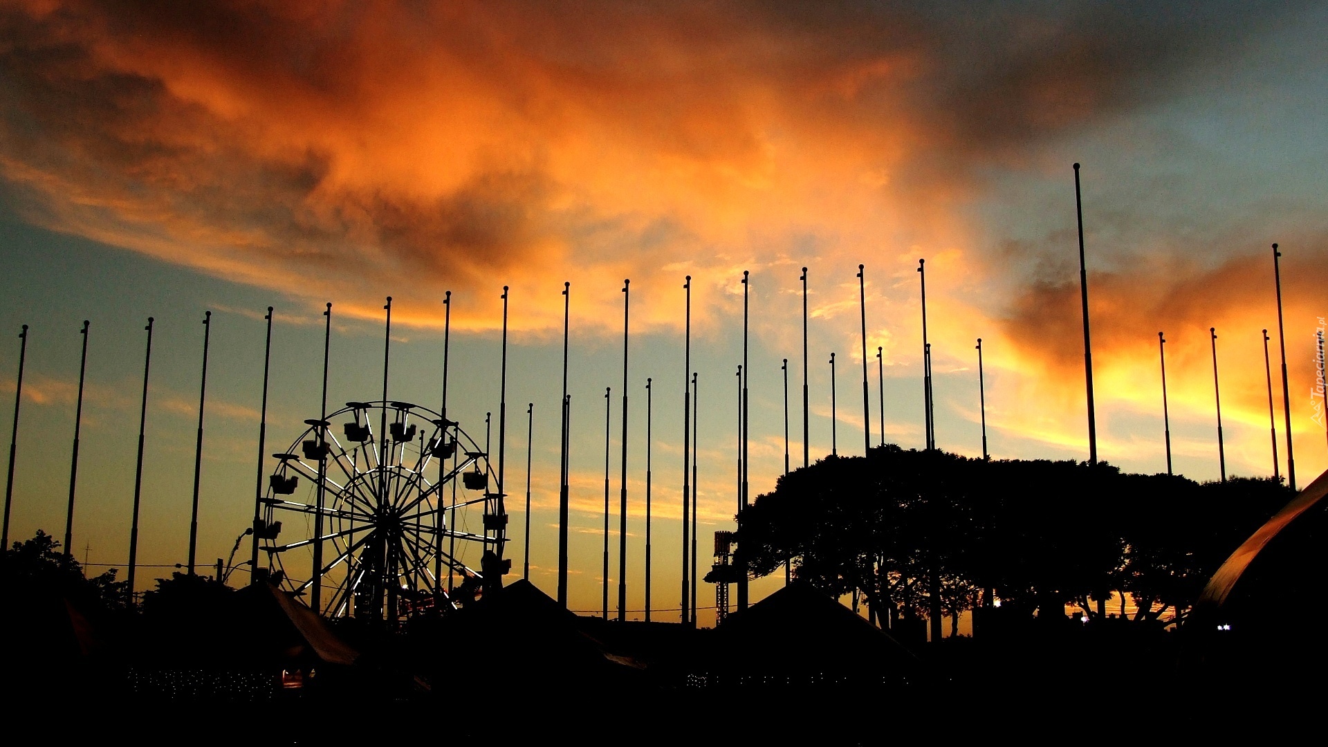 Edytor tapety: Chmury, Zachód, Słońca, Drzewa, Diabelski, Młyn