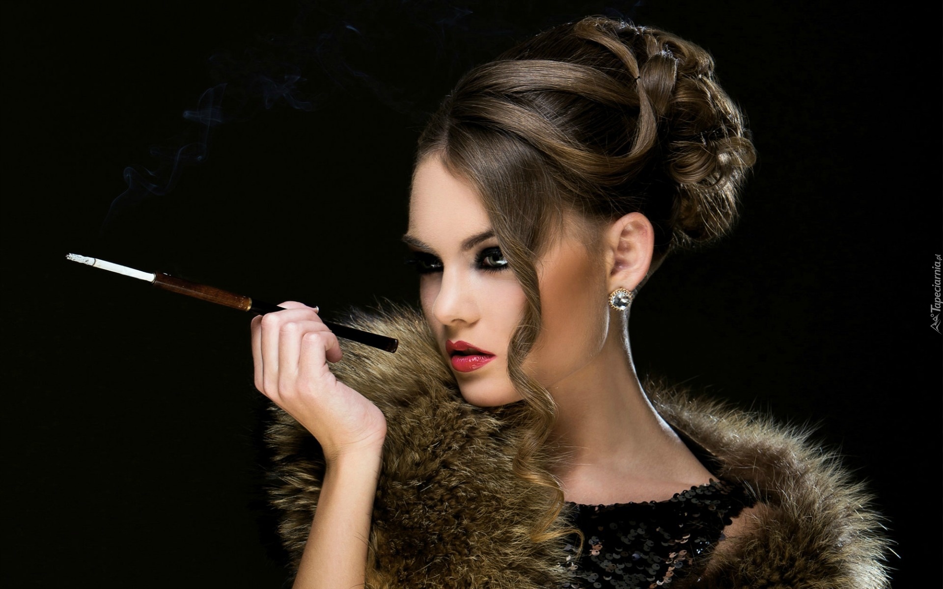 Edytor tapety: Kobieta, Retro, Makijaż, Biżuteria, Futro