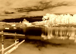 Edytor tapety: Ciemne, Chmury, Jezioro, Łódki, Las
