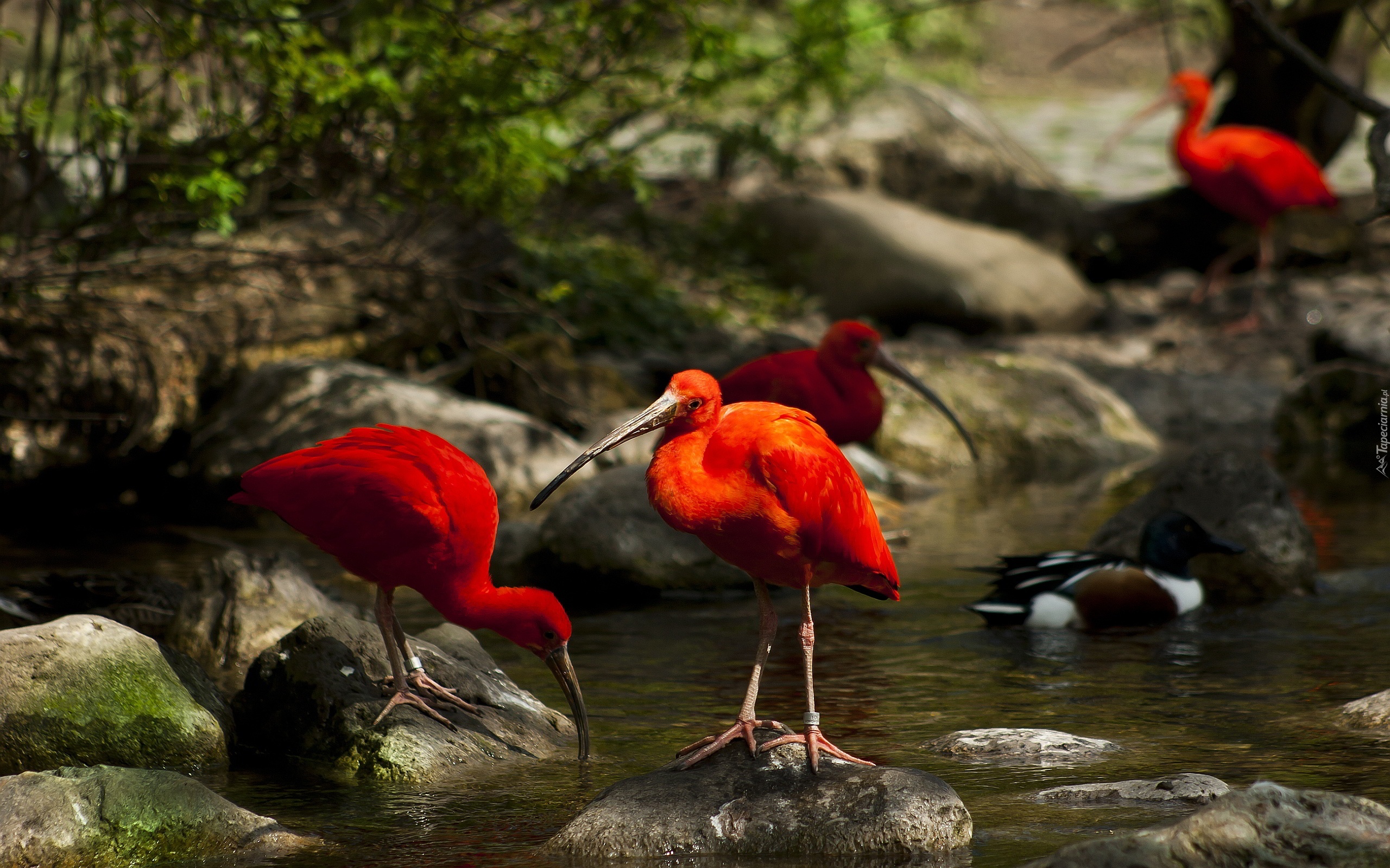 Edytor tapety: Ibisy, Woda, Kamienie