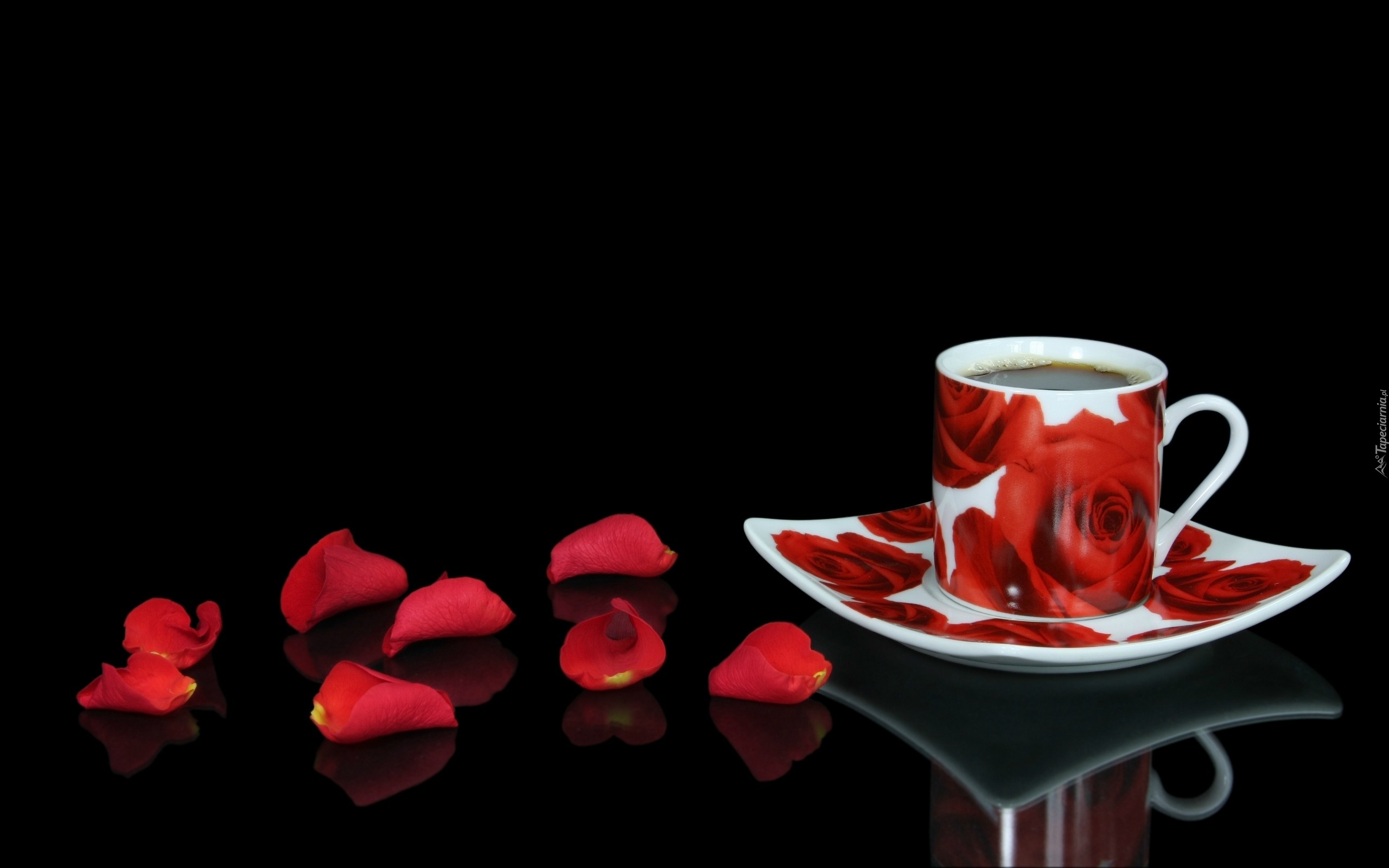 Edytor tapety: Filiżanka, Kawy, Róże, Płatki