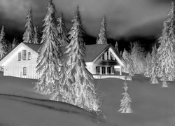 Edytor tapety: Zima, Dom, Zachód Słońca