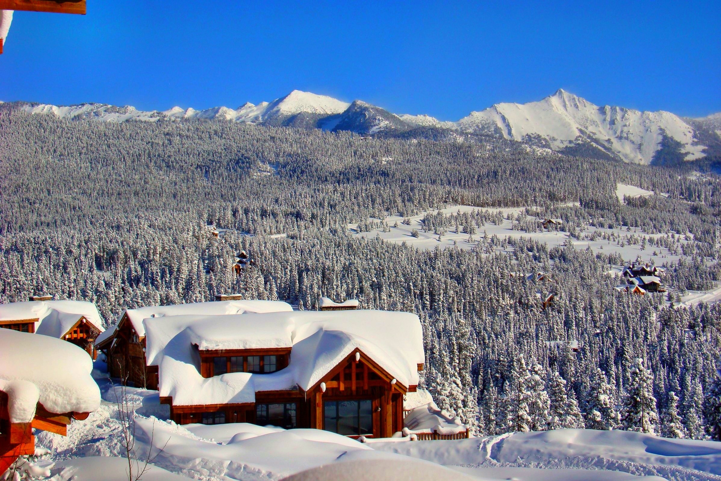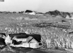 Edytor tapety: Zima, Góry, Lasy, Domy