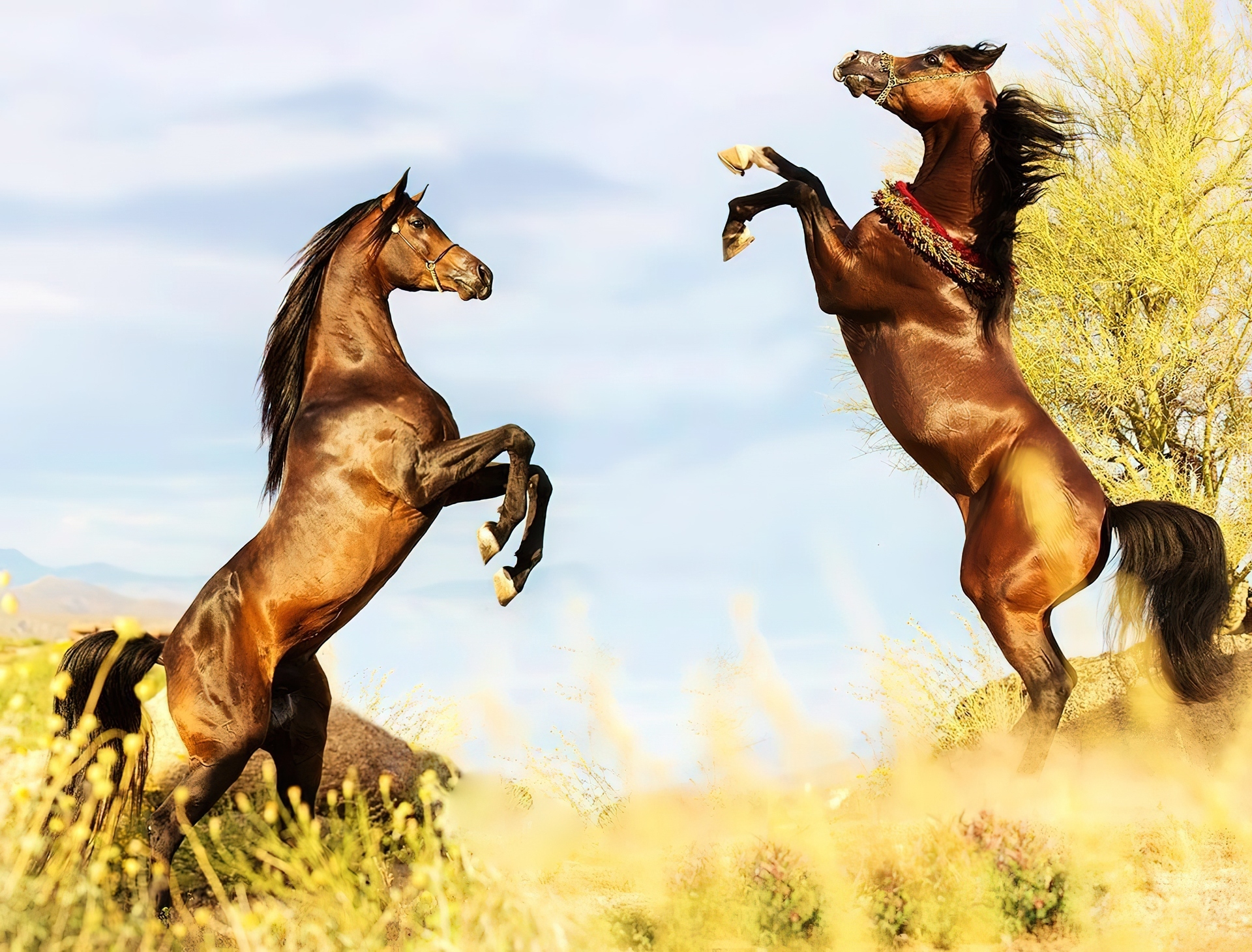 Edytor tapety: Dwa, Konie, Pesada