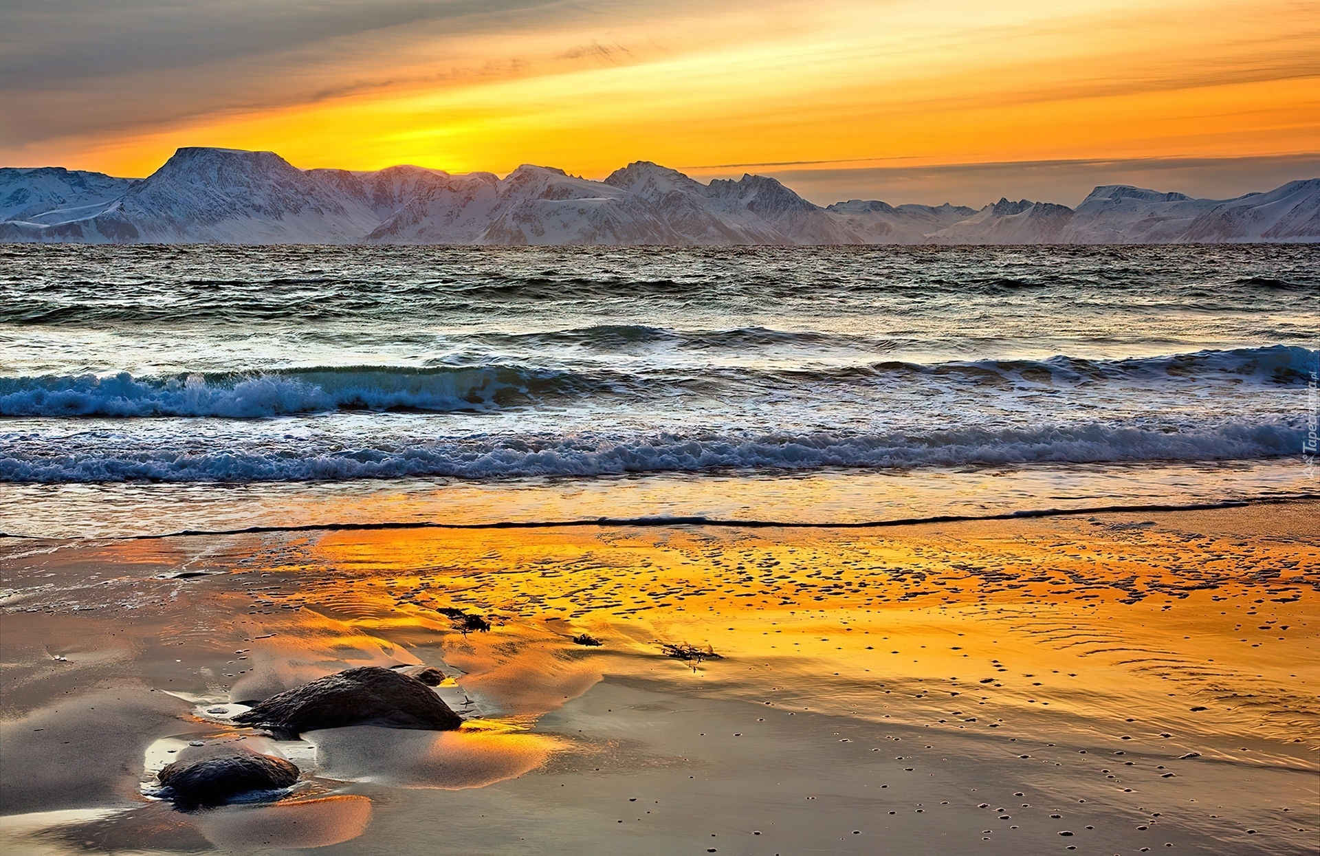 Edytor tapety: Zachód, Słońca, Morze, Góry