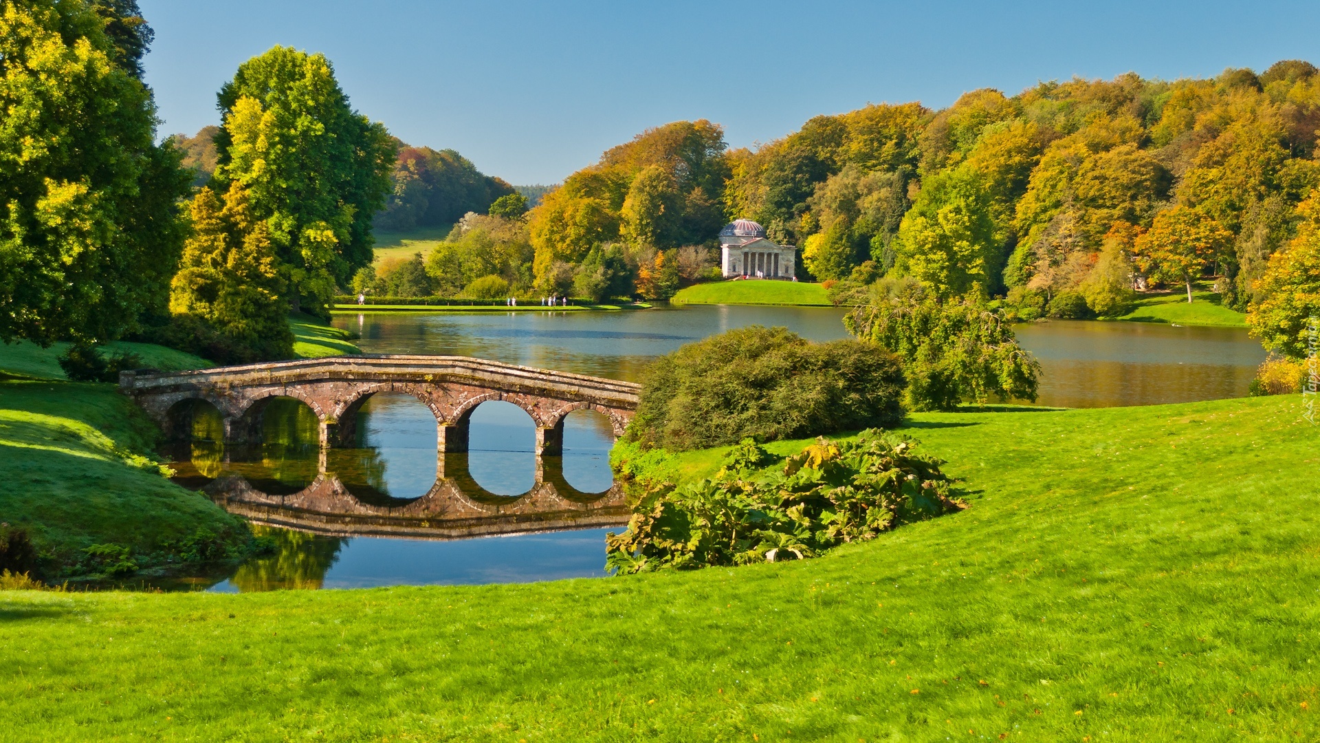 Edytor tapety: Mostek, Jezioro, Park, Stourhead, Anglia