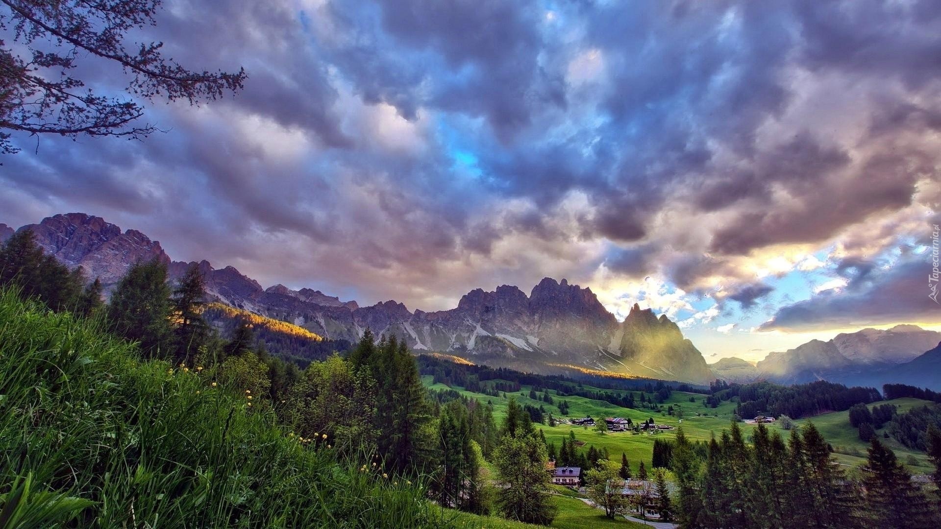 Edytor tapety: Góry, Drzewa, Chmury