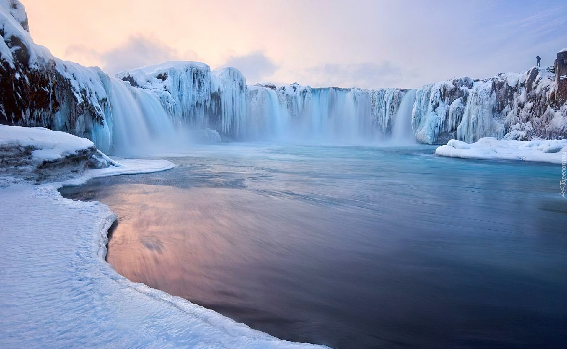 Edytor tapety: Rzeka, Wodospad Godafoss, Islandia, Zima, Śnieg