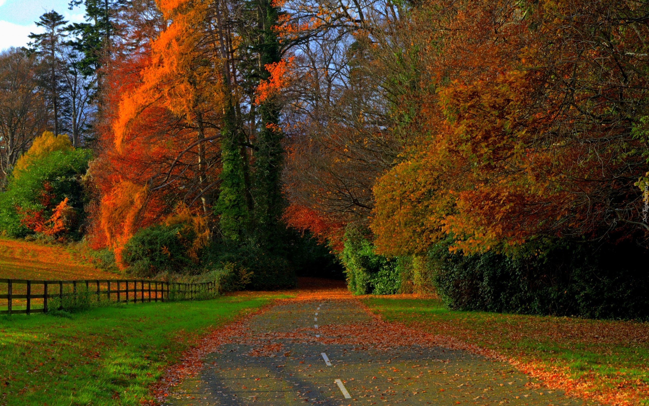 Edytor tapety: Las, Droga, Łąka, Liście, Jesień