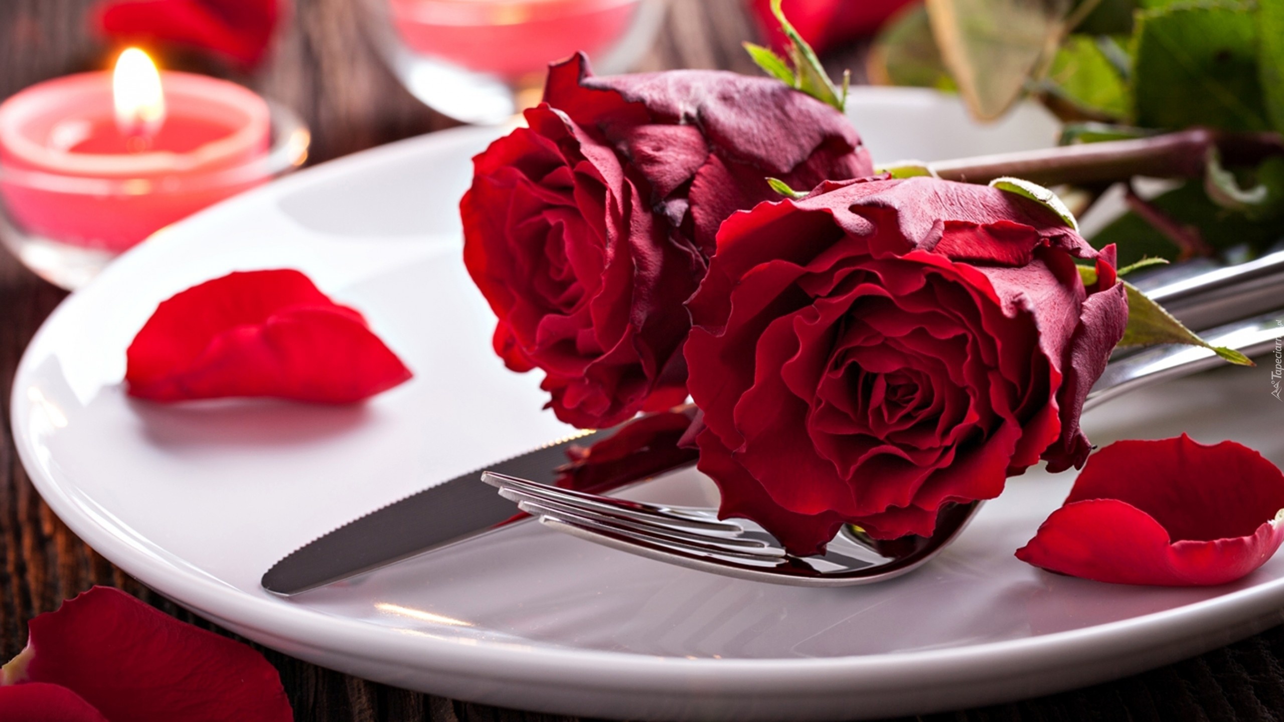 Edytor tapety: Róże, Płatki, Świece, Walentynki