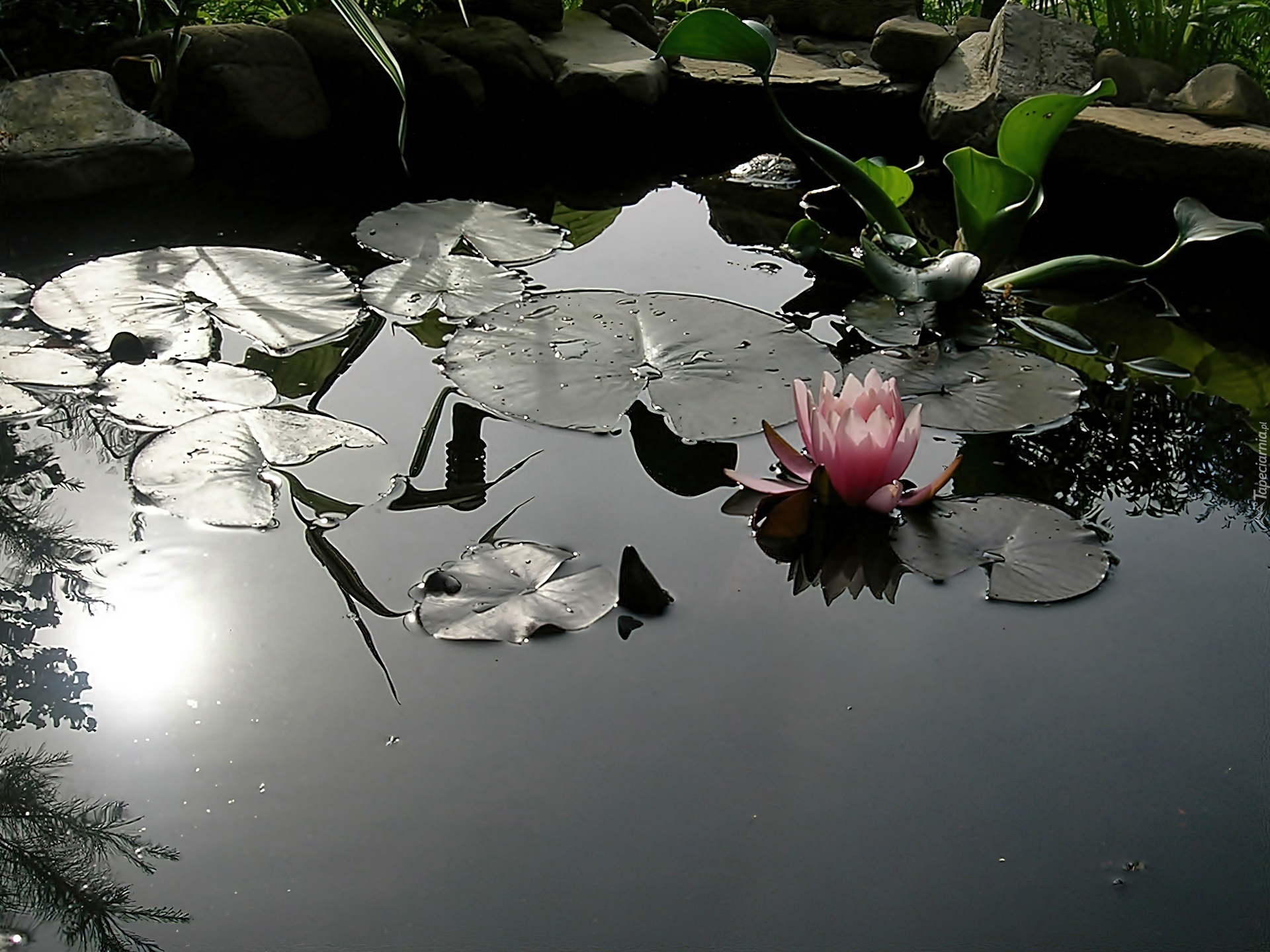 Edytor tapety: Ogród, Oczko, Wodne, Lilia, Wodna, Przebijające, Światło