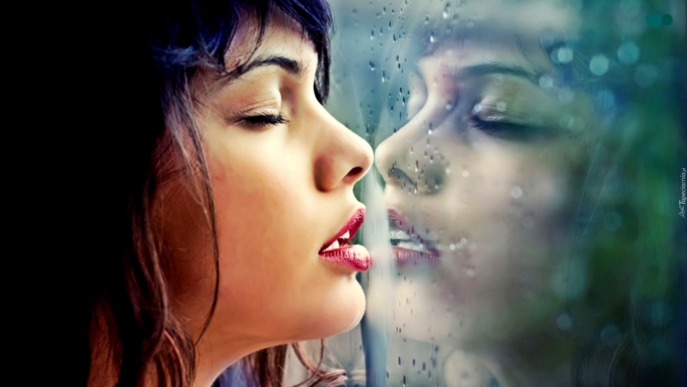 Edytor tapety: Piękna, Kobieta, Profil, Szyba, Odbicie, Deszcz