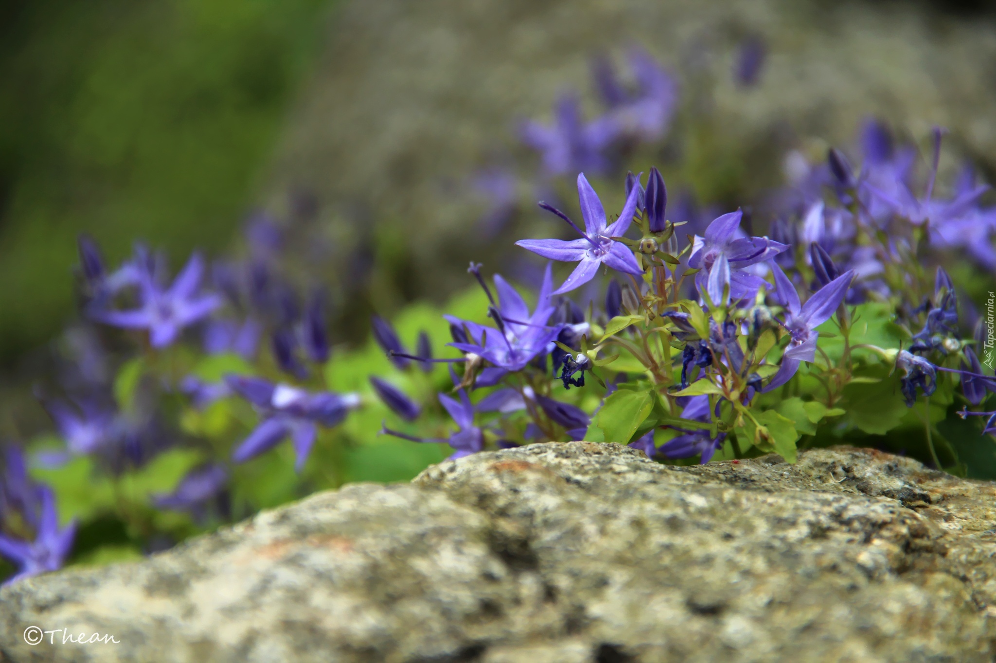 Edytor tapety: Fioletowe, Kwiaty, Kamień