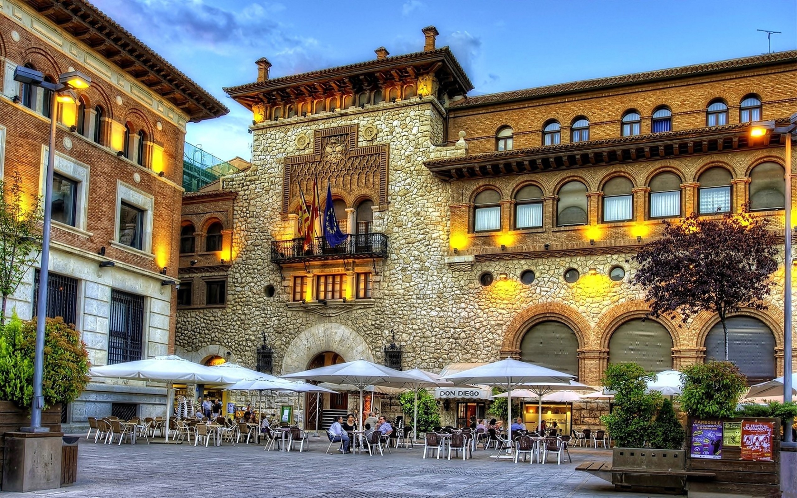 Edytor tapety: Wieczór, Fragment, Miasteczka, Domy, Restauracja