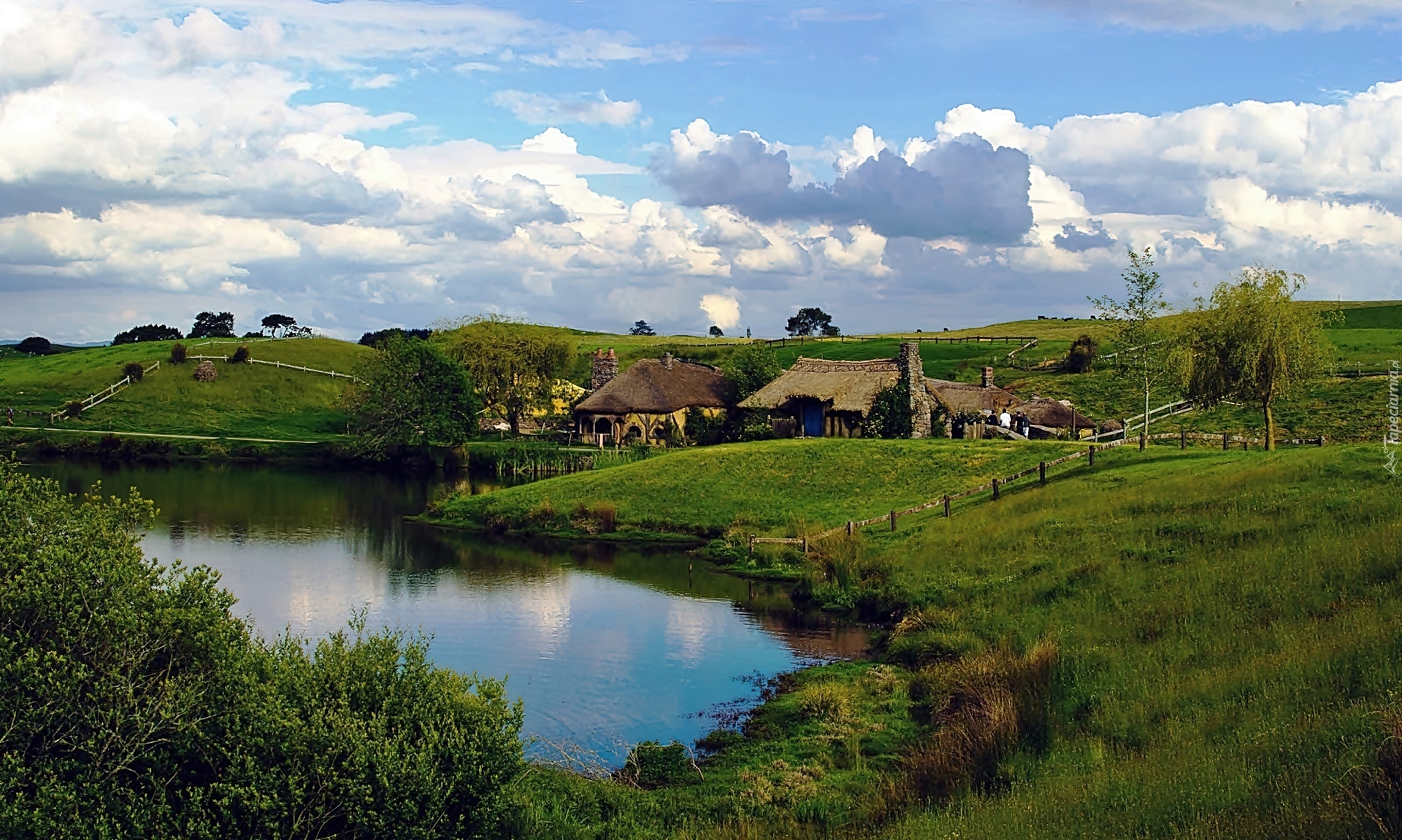 Edytor tapety: Kraina, Hobbitów, Wzgórza, Łąki, Domy, Staw