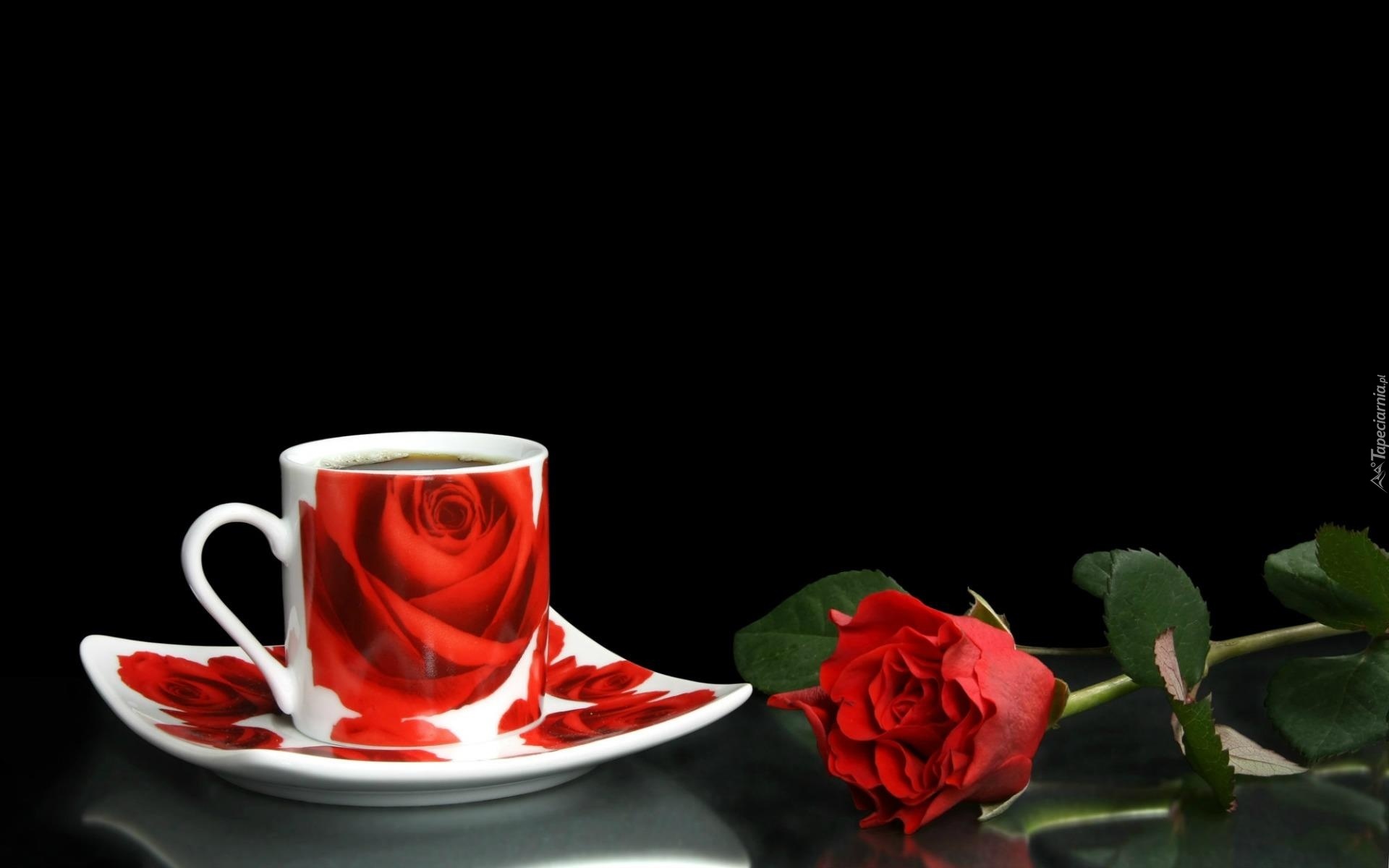 Edytor tapety: Filiżanka, Kawy, Róża, Kompozycja