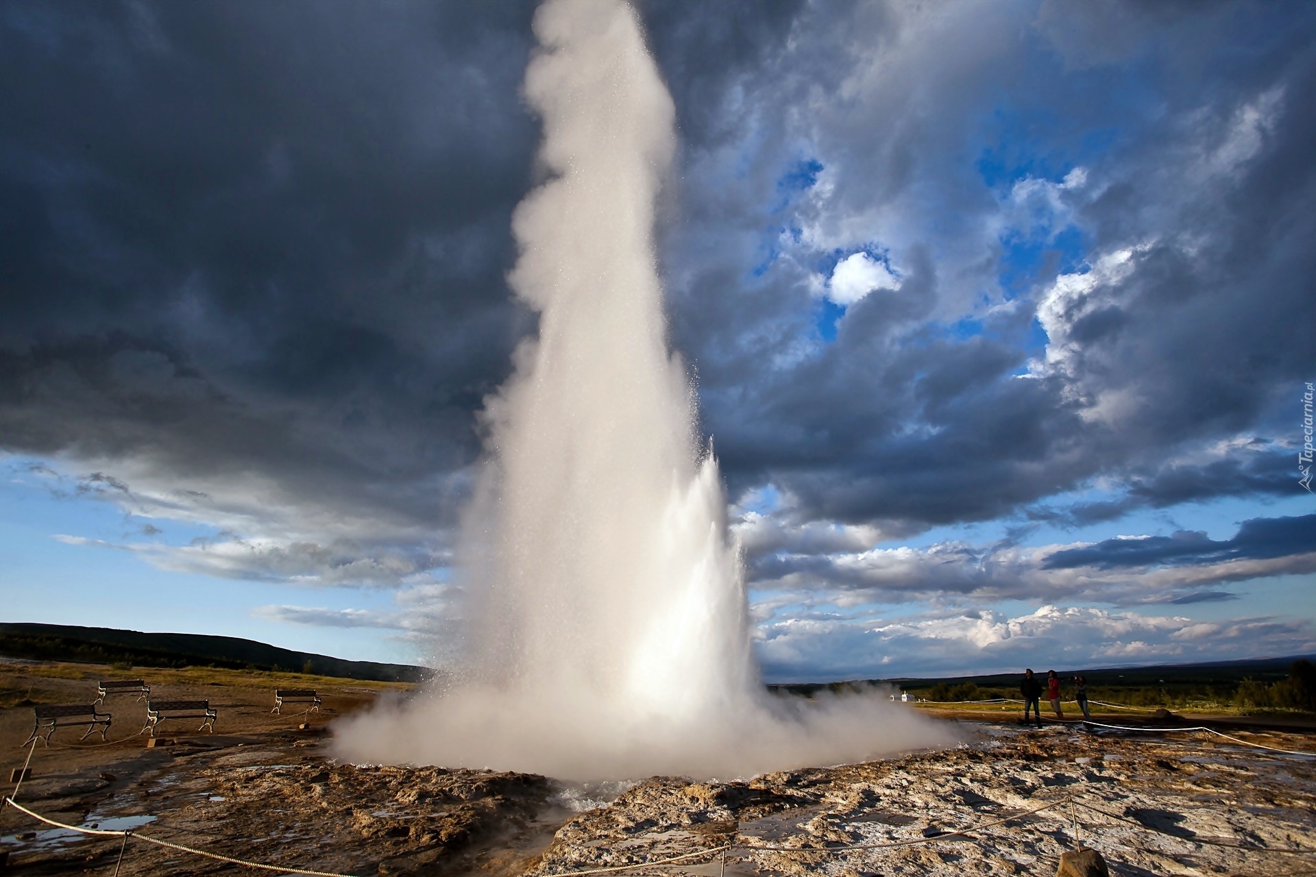 Edytor tapety: Ciemne, Chmury, Gejzer, Turyści