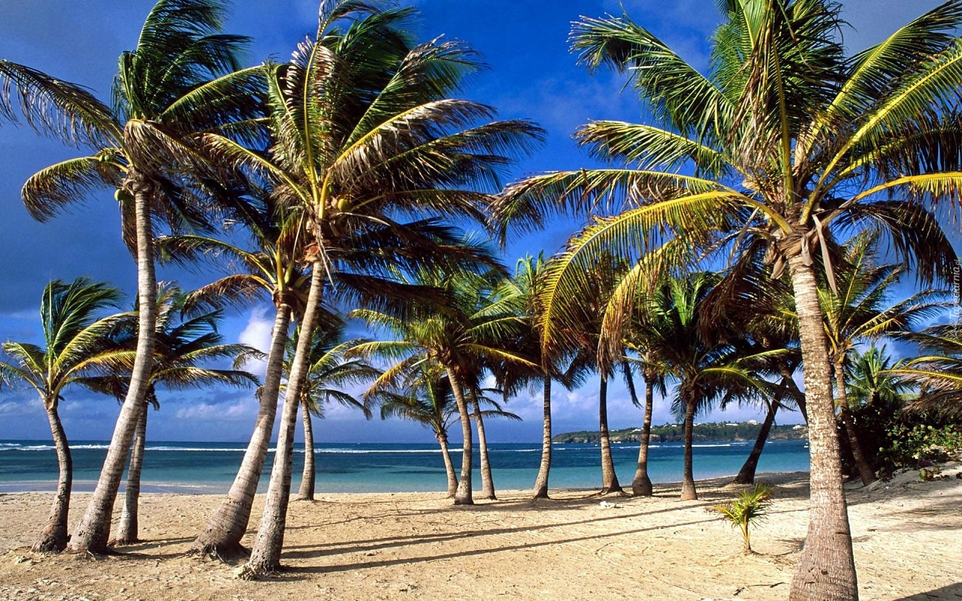Edytor tapety: Gwadelupa, Wyspa, Morze, Plaża, Palmy