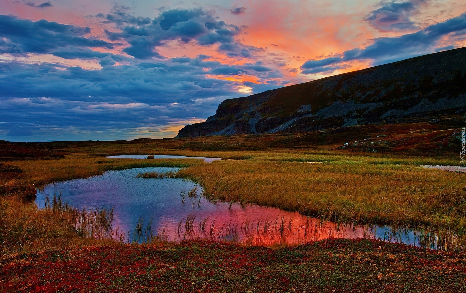 Edytor tapety: Zachód, Słońca, Góra, Rozlewiska