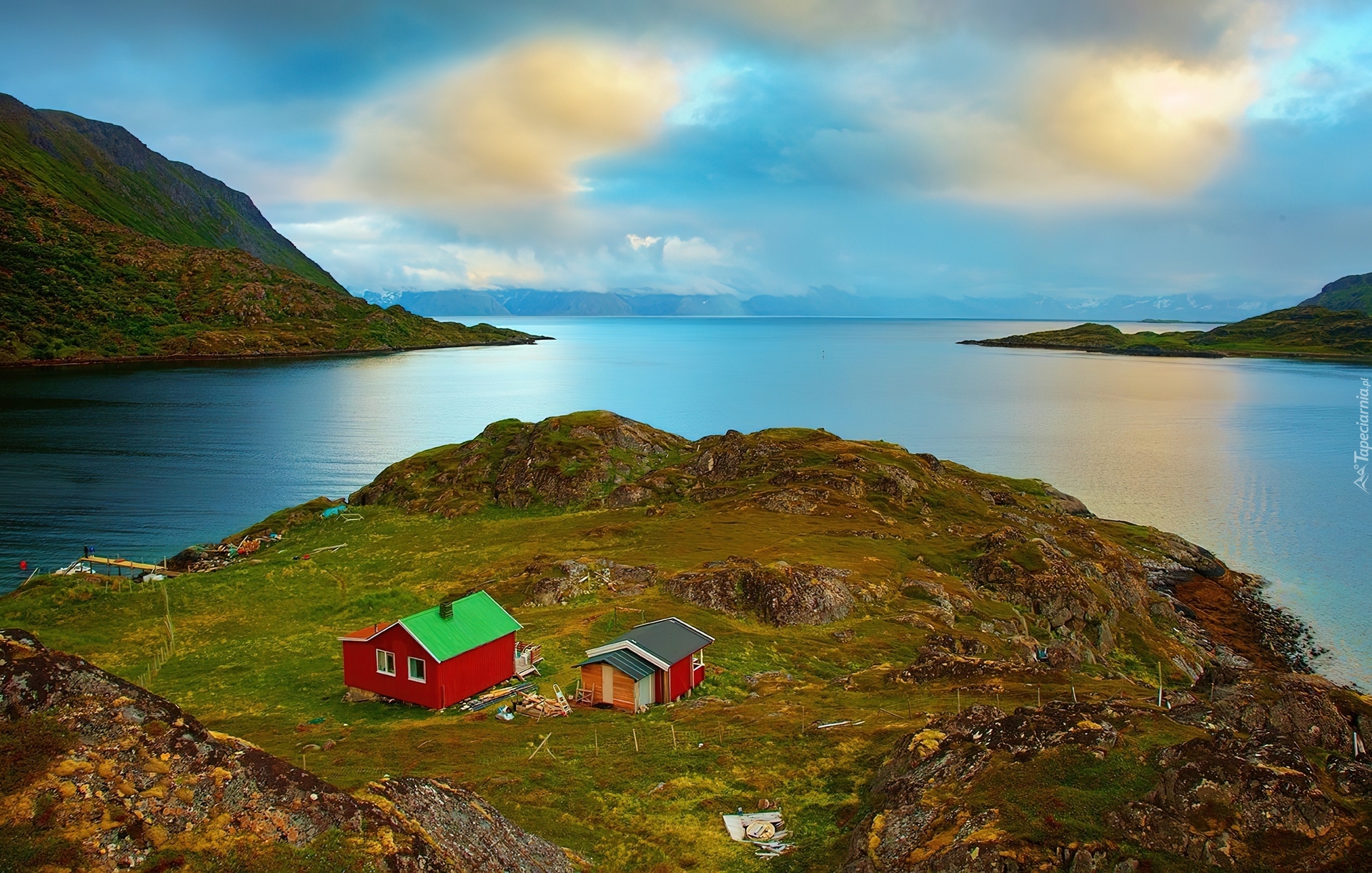 Edytor tapety: Chmury, Niebo, Jezioro, Góry, Domki