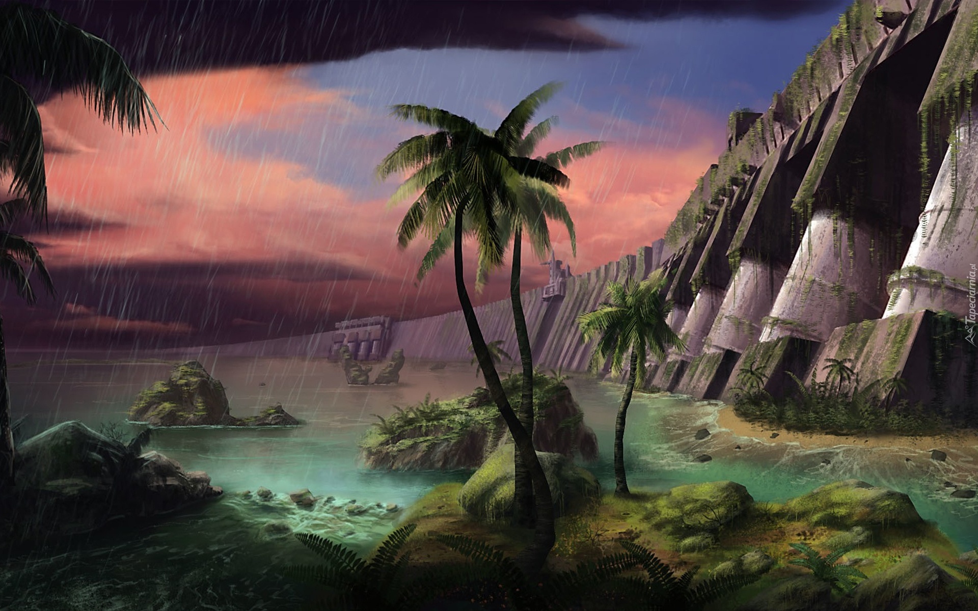 Edytor tapety: Jezioro, Palmy, Paprocie