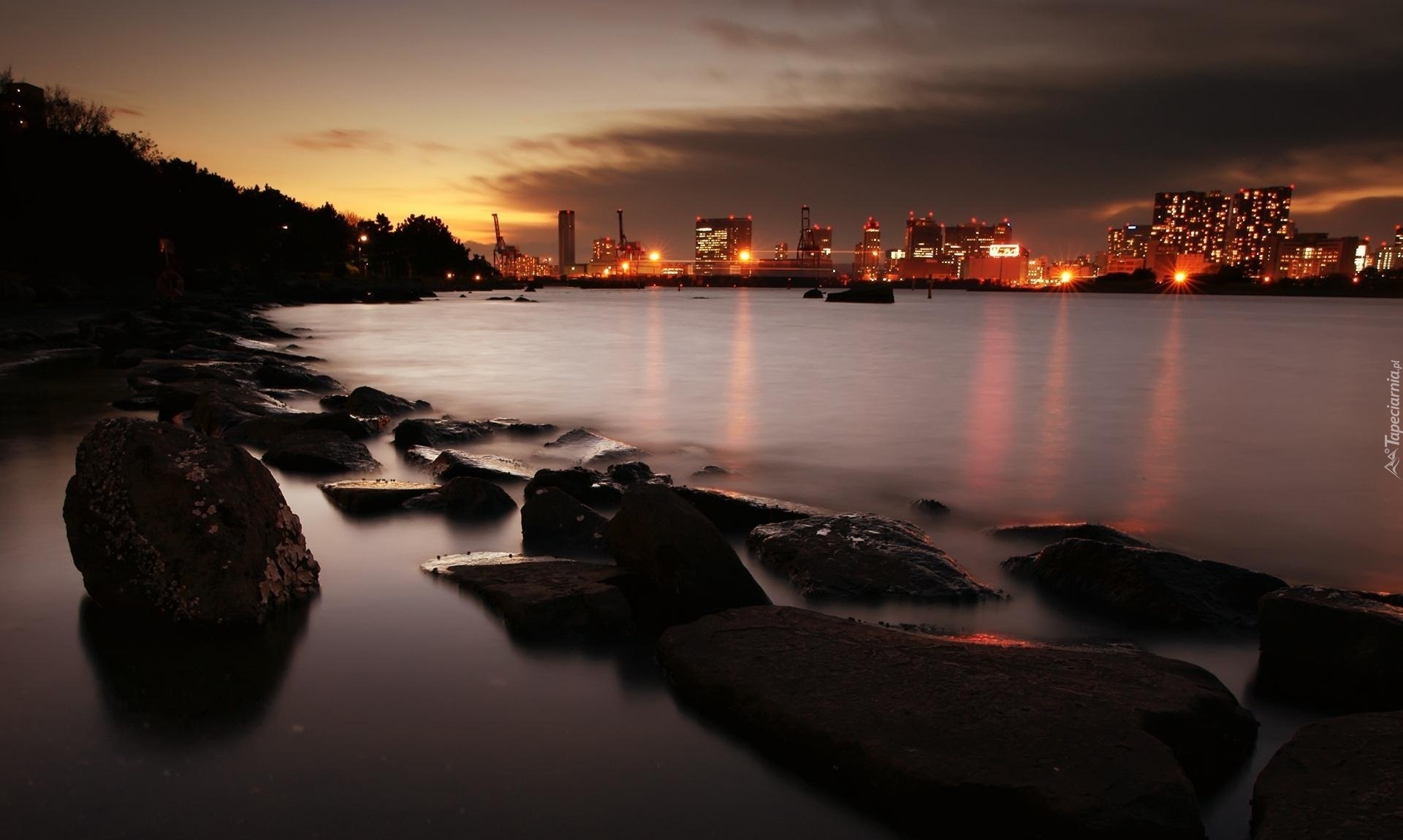 Edytor tapety: Morze, Kamienie, Zachód Słońca, Japonia