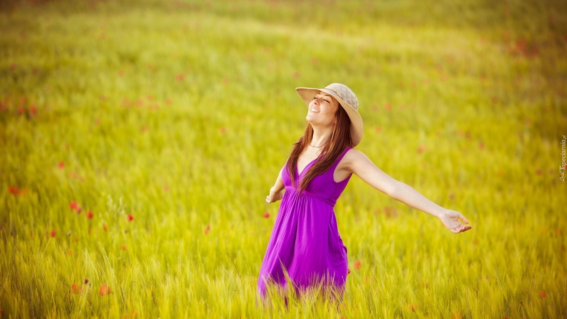 Edytor tapety: Kobieta, Kapelusz, Łąka, Radość