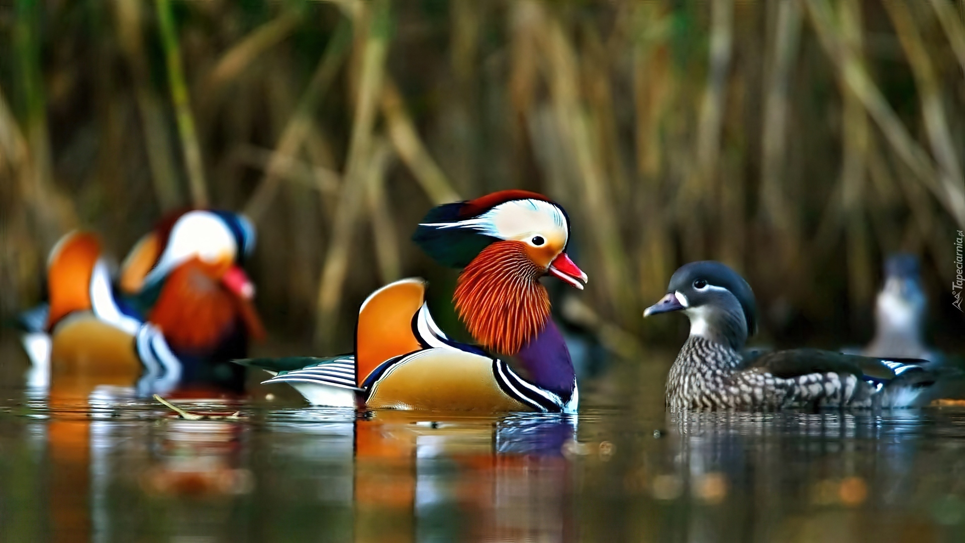 Edytor tapety: Jezioro, Kaczki, Mandarynki, Rozmycie