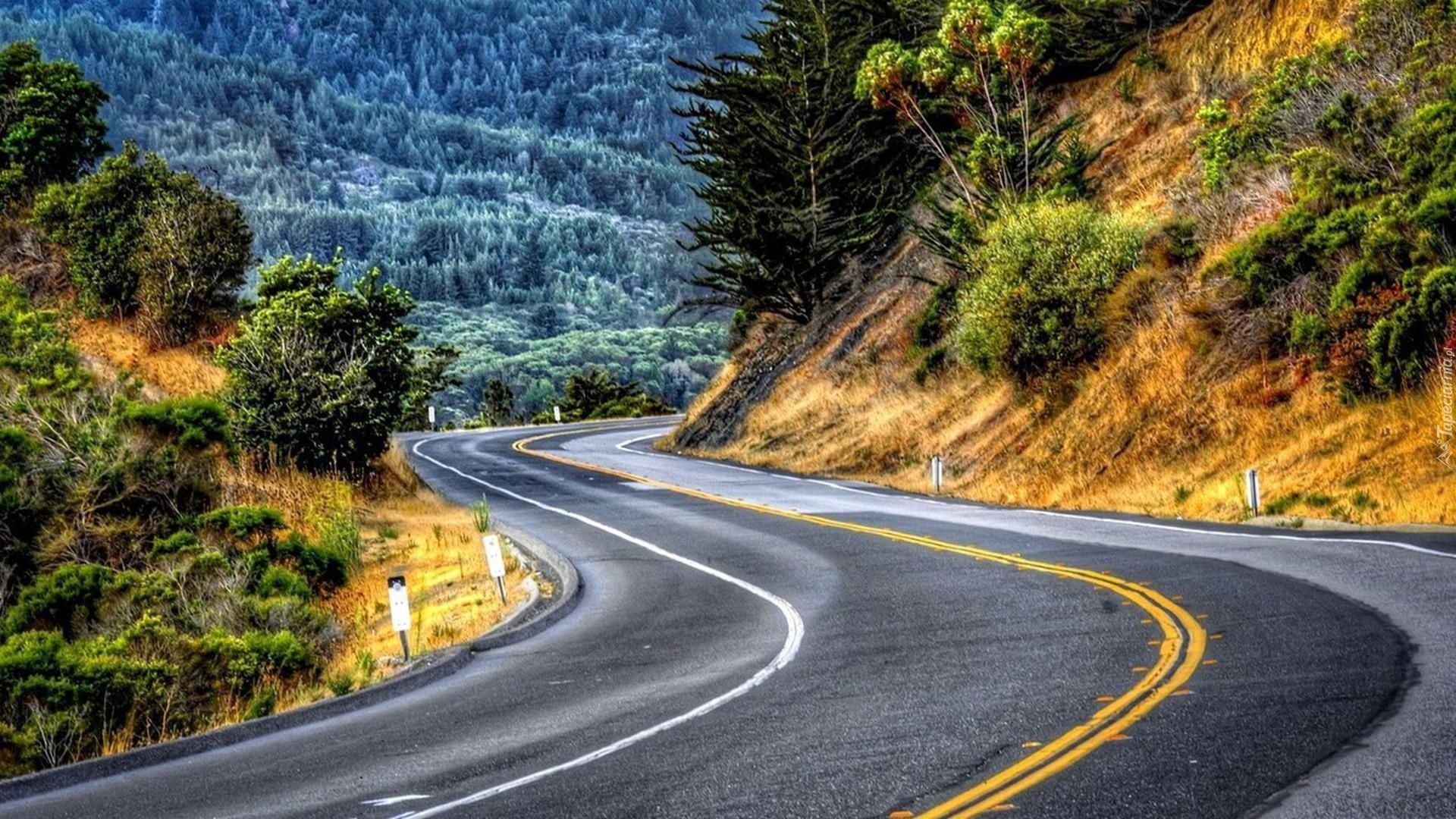 Edytor tapety: Droga, Wzgórza, Drzewa