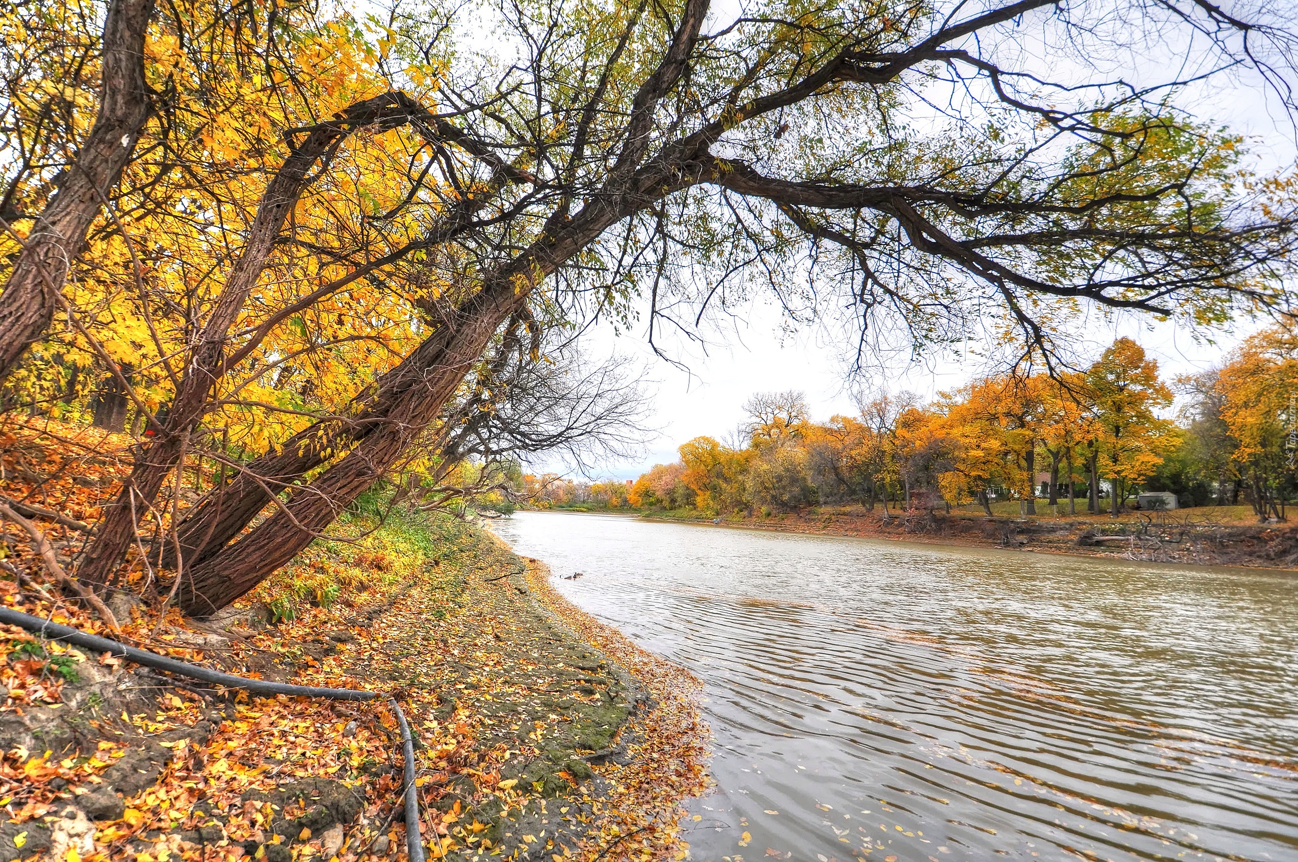 Edytor tapety: Rzeka, Jesień, Żółte, Liście, Drzewa